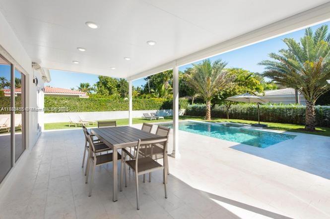 Completely renovated and located in the heart of Miami Shores, this beautiful home offers comfort, style, and smart features. The open-concept layout includes an oversized island and sliding glass doors that lead to a covered patio and private pool, perfect for relaxing or entertaining. The split-bedroom design provides a spacious master suite for added privacy. Enjoy clean, filtered water from a full-house water filtration system. Smart home features include a Ring video doorbell, Ring security cameras, Nest thermostats, smart lock, and Ring smoke/CO2 detectors. Detached two-car garage included. Rent covers landscaping and pest control for a worry-free experience.