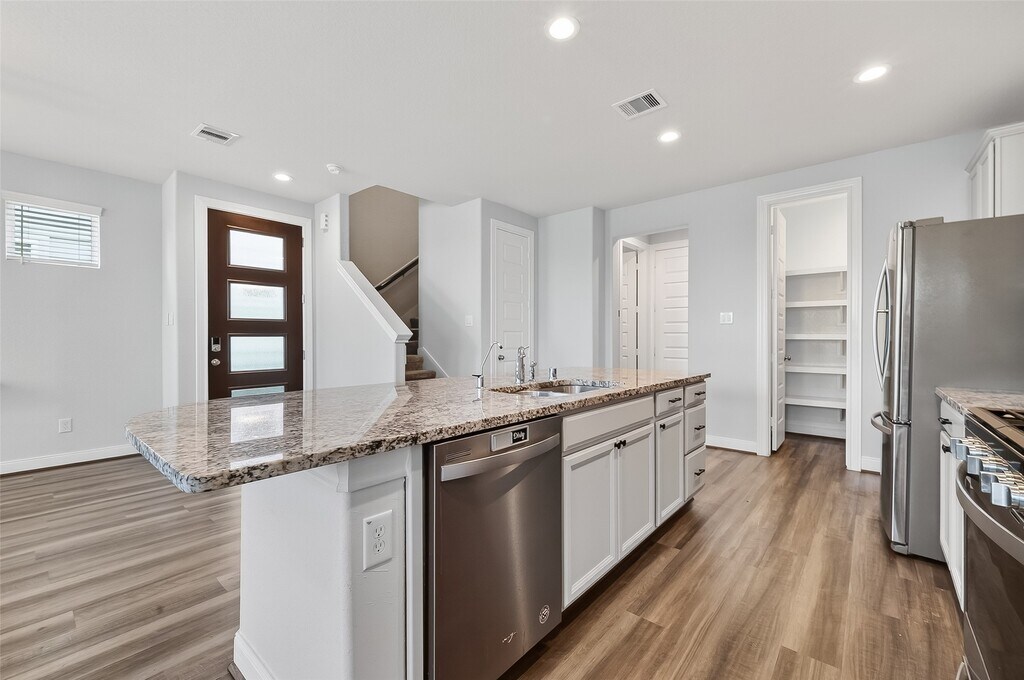 Thai TruongLAKE VIEW and in a gated community! prime access to 290, I-10, and the Beltway makes commuting a breeze. Amenity-rich community, this home checks every box: pool, fitness center, dog park, walking trails, parks, and more. The open downstairs layout is bright, airy, and thoughtfully designed with energy-efficient features throughout. The kitchen steals the spotlight with quartz countertops, a huge island, stainless steel appliances, and cabinetry and backsplash that flow flawlessly together. Retreat to the primary suite featuring a massive walk-in closet with shelving and a stunning ensuite bath with dual sinks, abundant storage, and an extra-large walk-in shower with bench. The turfed backyard offers effortless outdoor living with minimal upkeep. Modern, efficient, and beautifully built this is one you don t want to miss.