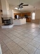 3BR / 2BA home with a 2-car garage, fireplace, and stainless-steel appliances. Features include a dining room, living room, and dedicated office space. Tile flooring throughout with carpeted bedrooms for comfort. The backyard has grass, and the front yard is landscaped, offering great curb appeal.