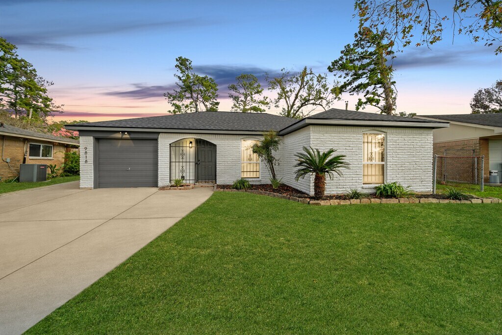 Welcome to 9818 Degas Lane! This single-story home offers 1,160 sq ft of living space with 4 bedrooms and 1.5 baths. The inviting front exterior features a crisp white brick façade,new dark roof,and coordinated trim,creating clean,modern curb appeal. Inside,the living room feels bright and welcoming,highlighted by a sliding glass door that fills the space with natural light and provides seamless indoor-outdoor access. The dining area sits just off the living room,making everyday living and entertaining effortless. The kitchen features a clean,functional layout with sleek white countertops,stainless steel appliances,and a gas range. The primary bedroom offers a calm retreat with en-suite bathroom access and a walk-in closet for easy organization. A screened-in patio provides a peaceful place to relax year-round while overlooking the spacious backyard,complete with a wide green lawn ideal for outdoor activities or future landscaping. MLS# 10672245