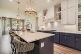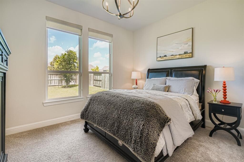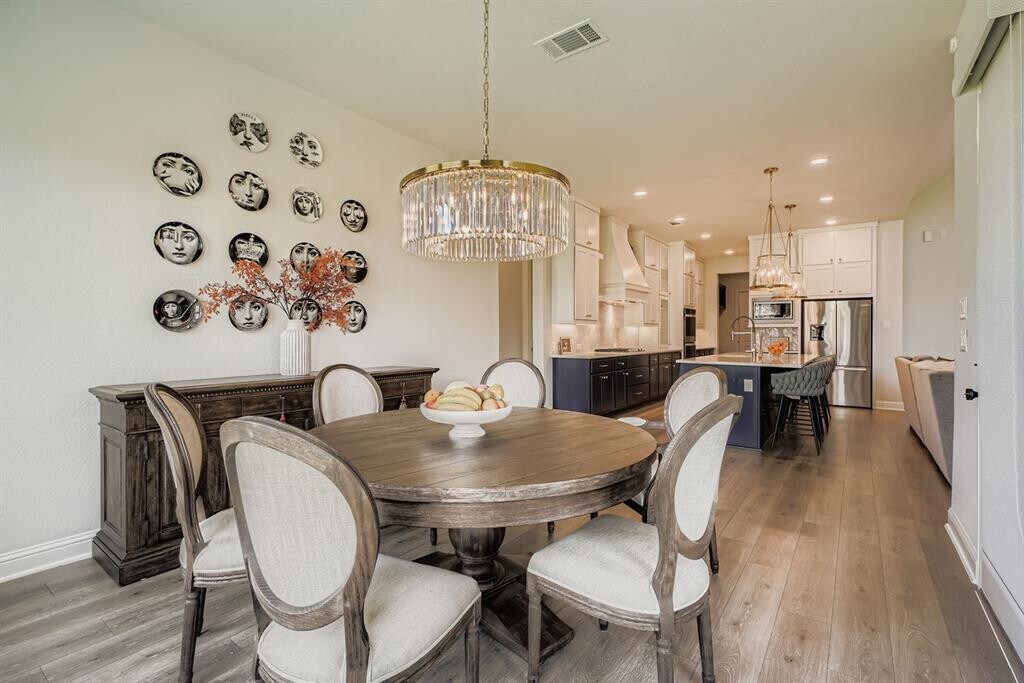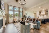 Stunning Eastland II by Drees Custom Homes in the exclusive gated section of Meridiana! This thoughtfully designed one-story home offers 3,622 sq. ft. of luxurious living on a spacious .28-acre lot with a 3-car garage. Step inside to find white oak wood floors throughout the entry, living, office, and media room, paired with custom designer light fixtures that add warmth and style. The spacious family room opens to the covered patio and expansive backyard, ideal for gatherings and outdoor fun. The home features 4 bedrooms and 3.5 baths, including a luxury owner’s suite, a private guest ensuite (perfect for multi-generational living or long-term guests), and two secondary bedrooms joined by a Jack-and-Jill bath. Designed for both entertaining and everyday living, you’ll love the custom built-in bar area, walk-in pantry, and oversized laundry room with plenty of storage. A beautiful media room with custom sconces, gorgeous wood paneled wall perfect for relaxing. With high-quality finishes, smart design, and a sought-after floor plan, this home truly blends elegance, comfort, and functionality. Located in an exclusive gated enclave of the community, residents enjoy enhanced privacy, security, and exclusive amenities in addition to the master-planned neighborhood’s resort-style offerings. These include a world-class gym and fitness center, kids’ waterpark, and a sparkling resort-style pool—offering luxury and leisure for all ages. With high-quality construction, smart design, and a highly desirable floor plan, this home delivers style, comfort, and convenience all in one.