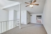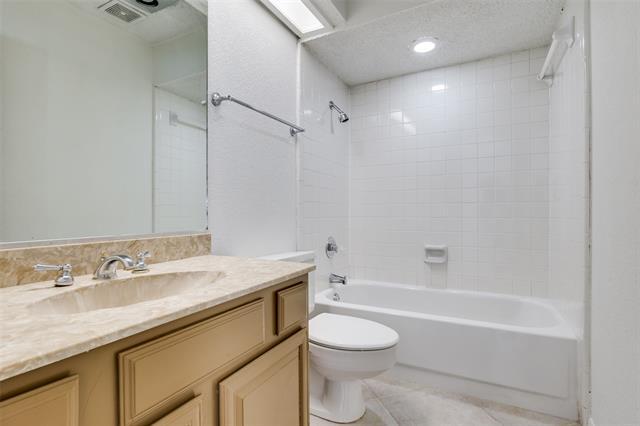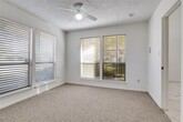 Improve your quality of life in this conveniently located townhome with easy access to airports, shopping, restaurants, college, sporting events, I75, 635, and Dallas North Tollway! Location is everything and this home has it! Enter through a private courtyard gate into a huge open, light filled living room featuring a two story beamed and vaulted ceiling. The kitchen is just the right size with good storage and a pantry. Your dining room features a mirrored wall and contemporary chandelier. A 1970's glam era spiral staircase leads you to a huge opened second living area perfect as a game room, office, or exercise room. Both bedrooms are large with massive walk-in closets. The Primary Bath boasts twin lavatories and lots of storage. The home has tile floors, new carpet, and fresh paint throughout. A closet utility area accommodates your full size washer and dryer. The backyard is fully turfed with an 8 foot privacy fence and direct access to the oversized two car garage. The friendly Chimney Hill neighborhood has swimming pools, tennis and pickleball courts, green spaces, playground, a dog park and the Landlord pays your HOA dues. Come make this easy living townhome your new home and improve your quality of life today!