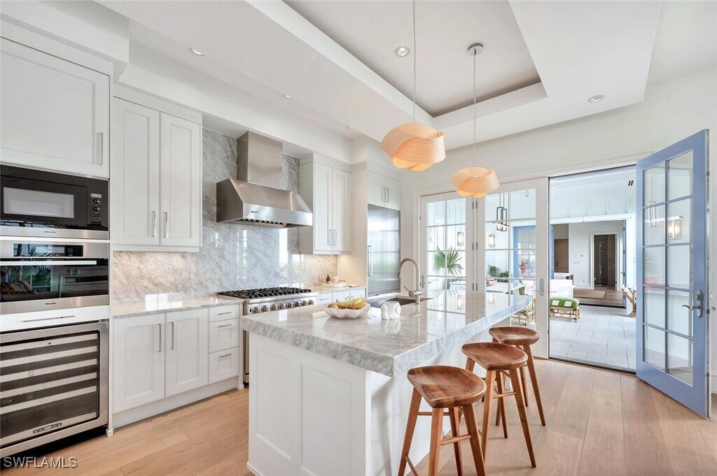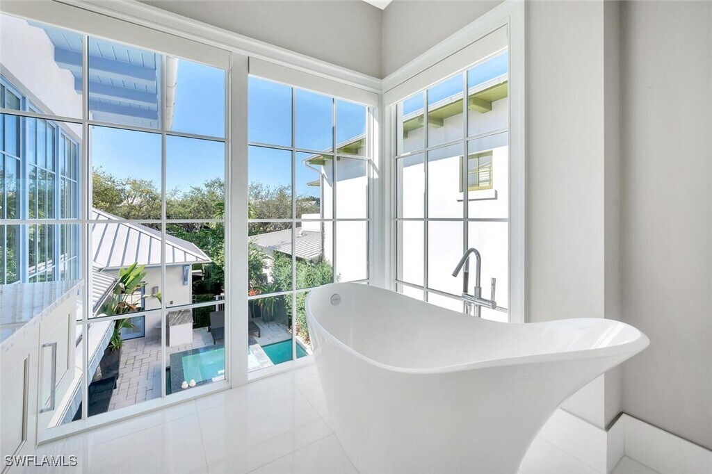 Just minutes from the charm of 5th Avenue South,3rd Street South,and the sparkling waters of Naples Bay,this modern three bedroom,four bath home is your private winter sanctuary. From the moment you arrive through the lushly landscaped entrance,you’re surrounded by understated elegance,from the warm tones of Legno Bastone European wide-plank floors to the artful balance of light and space throughout. The kitchen,the true heart of the home,invites gathering and conversation with its marble-topped island,Miele appliances,Viking gas cooktop,and walk-in pantry. It flows into a sunlit living room where chic furnishings and a wall of French doors open to a serene view of the pool and gardens beyond. Just outside,the line between indoor and outdoor living blends seamlessly. The resort-style pool shimmers under the Florida sun,surrounded by waterfalls,fire bowls,and spaces made for long afternoons and easy evenings,dining,lounging,and savoring the moment. Off the pool,a private guest suite welcomes visitors with comfort and style. Upstairs,the primary suite feels like a luxury retreat of its own,with a king-sized bed,soaring ceilings,and two walk-in closets. The spa-inspired bath,complete with a soaking tub and glass walk-in shower,offers the perfect space to unwind. A second guest suite with its own balcony completes the picture,a quiet corner for morning coffee or sunset reflections. With a two-car garage tucked away off a private alley and every detail designed for ease and beauty,this home captures the essence of Naples living — elegant,relaxed,and effortlessly extraordinary. Live exceptionally in Old Naples!
