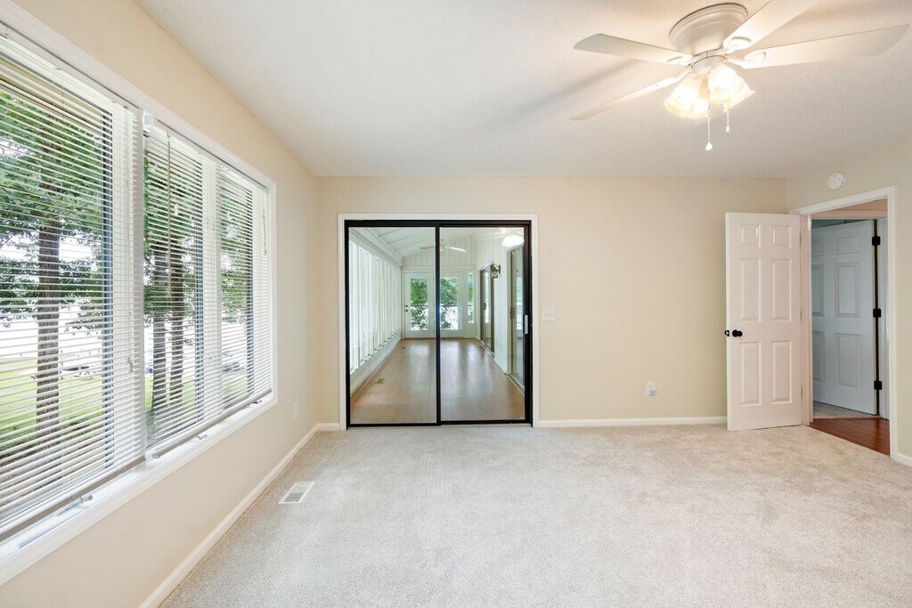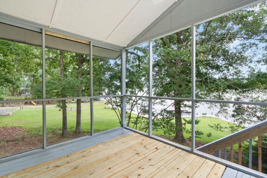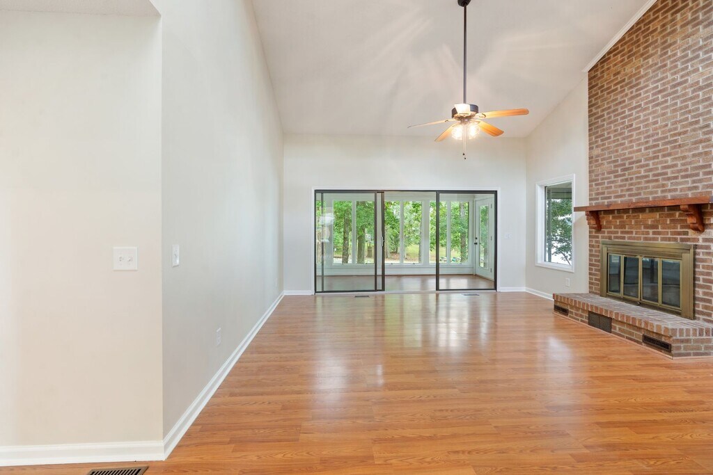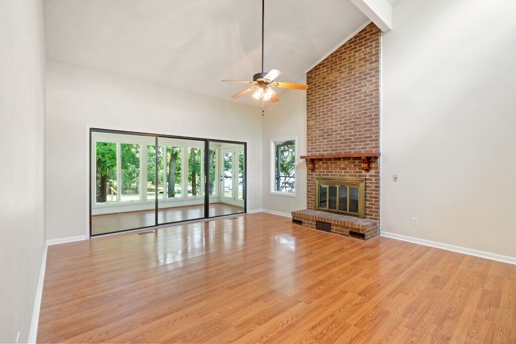 Contemporary Carolina Trace home available now! Updates throughout with paint, and an oversized sunroom you will enjoy life on the lake! Beautiful lake view from den, sunroom, primary and second bedroom. Home is located in cul-de-sac in Southwind community of Carolina Trace. This home is a true ranch with all 3 bedrooms on one level. Kitchen has granite and stainless steel appliances. Fantastic decorate fireplace anchors the living room. Owners suite has full bathroom and access to the sunroom. The property backs up to community area with dock and park. Carolina Trace offers many amenities! Enjoy the pool, tennis court, gated entrance, marina, and boat docks. Offered for lease by Park Real Estate Management. Contact Broker Nicole Galiger for information at info@park- $75 application fee per applicant; $100 tenant onboarding fee per adult tenant. Approval requires 650+ credit score and income 3x the monthly rental rate.