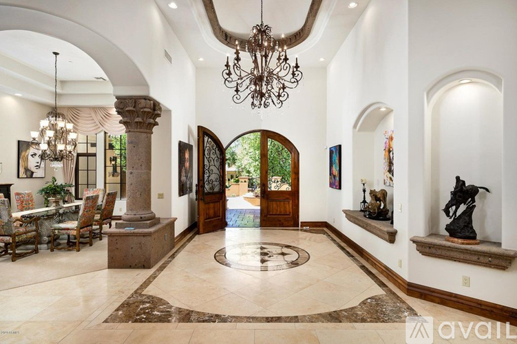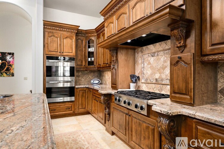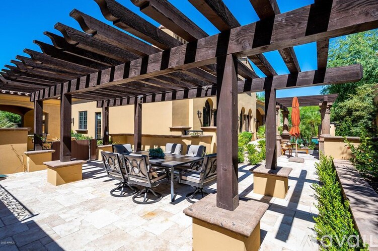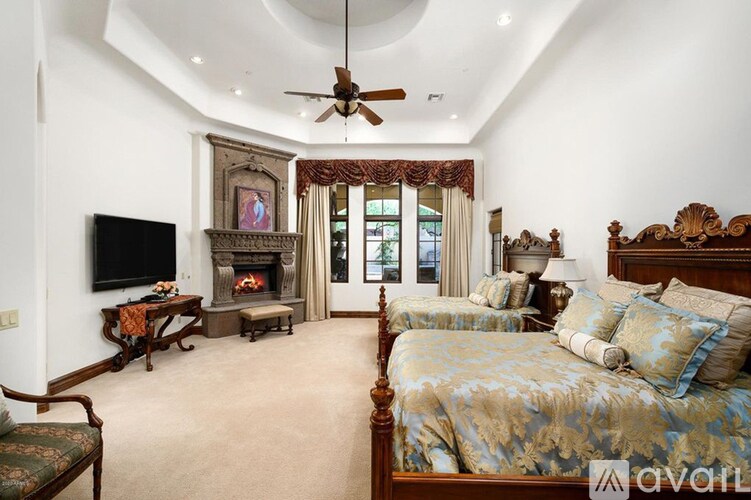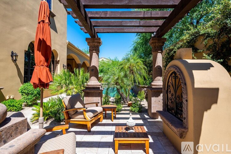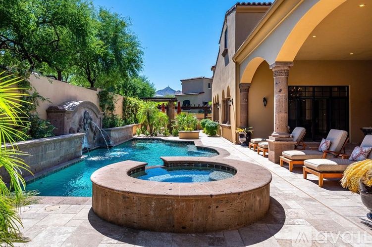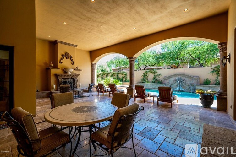 Fronting a lush green park in the gated Arcadia neighborhood of the exclusive community of Silverleaf (within the upscale master-planned DC Ranch), our FULLY FURNISHED Palatial House offers the perfect livable single-level floor plan with a 2-bedroom casita for additional guests. Beautifully appointed and with an open great room floor plan – you enter the home through a private courtyard to views of the sparkling outdoor pool. The lushly landscaped backyard features a sparkling pool, spa, two outdoor fireplaces, multiple patio areas and charming Pergola covering the built-in BBQ & outdoor dining area. The palatial family room with a full bar and carved stone fireplace open to outdoor living, dining, private gym, pool and spa. Rich materials are found throughout the large kitchen, two dining areas, and exercise room. The downstairs master bedroom features a magnificent fireplace and guest rooms are luxuriously large, well-appointed and are separated by an office for privacy. Our 5 bedroom / 5 1/2 -bath opulent custom North Scottsdale / Silverleaf estate offers an upstairs suite including a guest room, full bath, bonus room and kitchenette - great space for guests, or perfect as an office. There are plenty of covered outdoor entertaining spaces with two indoor and two outdoor fireplaces, great dining spaces and a BBQ center with a pizza oven in a covered second outdoor kitchen. Silverleaf / DC Ranch community offers multiple tennis courts, a gym and a lap pool - all these luxury facilities can be accessed by Residents of our beautiful property. Amenities: Luxury Home 7,582 sq. ft. Bedrooms: 5 / Bathrooms: 5 Central Vacuum, Fire Sprinklers, Soft Water Loop, Water Softener Owned, Wet Bar(s) Built-in BBQ, Covered Patio(s), Gazebo/Ramada, Private Street(s), Pvt Yrd(s)/Crtyrd(s) Built-in Microwave, Dishwasher, Disposal, Granite Countertops, Kitchen Island, Multiple Ovens, Pantry, Range/Oven Gas, Refrigerator, Walk-in Pantry, Wall Oven(s) 3+ Fireplaces, Exterior Fireplace, Firepit, Fireplace Family Rm, Fireplace Master Bdr, Gas Fireplace Schools: Scottsdale Unified District 048: Copper Ridge Elementary School & Chaparral High School