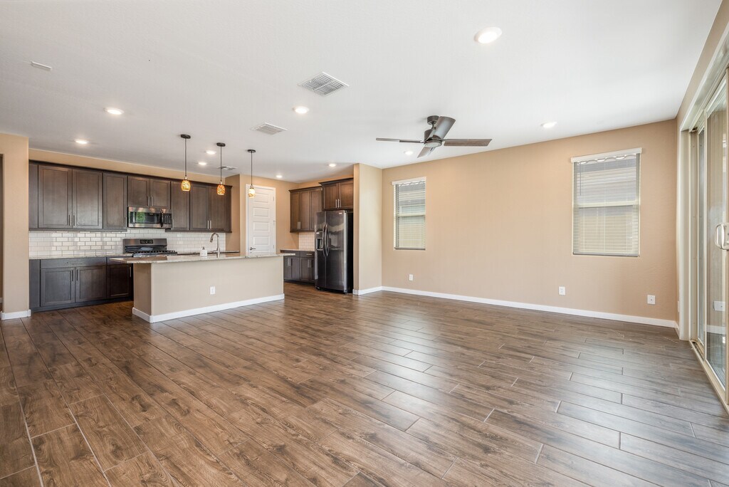 Inviting and modern single-story home in a friendly, safe East Mesa neighborhood. Open-concept living and kitchen layout with natural light, plus a flexible formal dining area that can be used as a study or home office. Furnished living room, kitchen, and dining spaces (additional furnishing options available).Features include 2-car garage with storage, ceiling fans in all rooms, luxury LG washer & dryer, gas stove, and patio with gas grill and gas fire pit. Large sliding glass door opens to a low-maintenance backyard—perfect for relaxing or entertaining!!Photos shown are prior to furnishing. The living room, kitchen, and dining areas are furnished, with additional furnishing options available upon request.Home Features2-car garage with storage racksCeiling fans in all roomsExcellent temperature control year-roundLuxury LG washer & dryer and full appliance packageGas stove + gas grill hookup on patioLarge modern sliding glass door overlooking the backyardLow-maintenance backyard with gas fire pit—perfect for evenings outdoorsCommunity Amenities2 main pools (one with water slides & splash pad island for all ages)Hot tubLarge grillsLava rock fire pitMultiple neighborhood parksCommunity office centerGym access available upon request (mobile phone keycard setup required)Scenic walking paths and multiple lakesRent & Lease TermsFurnished living room, kitchen, and dining areaMonthly rent includes all utilitiesMid-term to long-term lease preferredMonth-to-month available (contact for short-term options)Month-to-month requires 30-day notice prior to final monthSecure online rent portal (credit card, debit, or ACH)Monthly professional cleaning includedBathrooms & common areas cleanedBedrooms remain private spaces