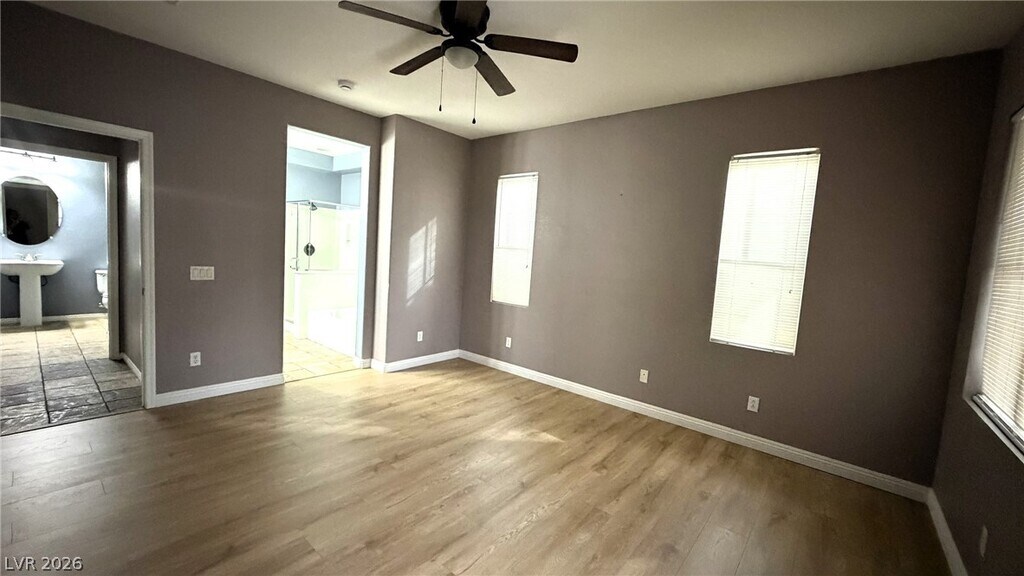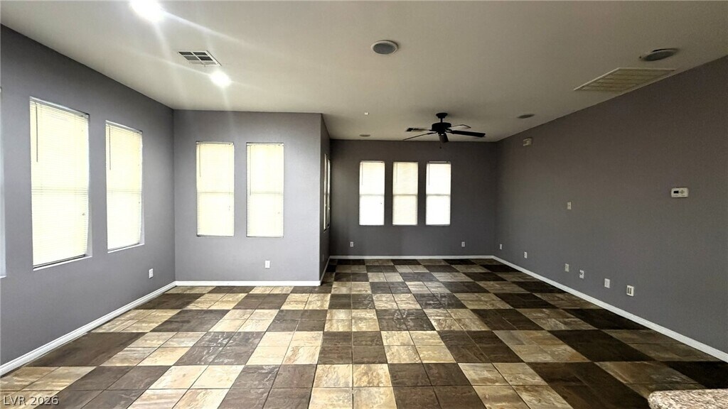 Don’t miss this beautiful 2-story split-level home located in the heart of highly desirable Mountains Edge in Southwest Las Vegas! This versatile layout offers space, privacy, and flexibility. Upon entry, head downstairs to a spacious family room with direct access to the backyard. The covered patio creates an ideal space for outdoor relaxation. This level also features two generously sized secondary bedrooms, a full bathroom, and an additional common area that works perfectly as a game room, home office, or study space. Upstairs, enjoy your private primary retreat complete with its own balcony — the perfect spot for morning coffee or evening wind-down time. The primary suite also includes a large walk-in closet and an ensuite bathroom with dual vanities, a separate soaking tub, and a walk-in shower. Additional features include: 2-car garage & Ceiling fans throughout. Total fixed rent is $1850/month ($1800 rent+$50 sewer/trash)