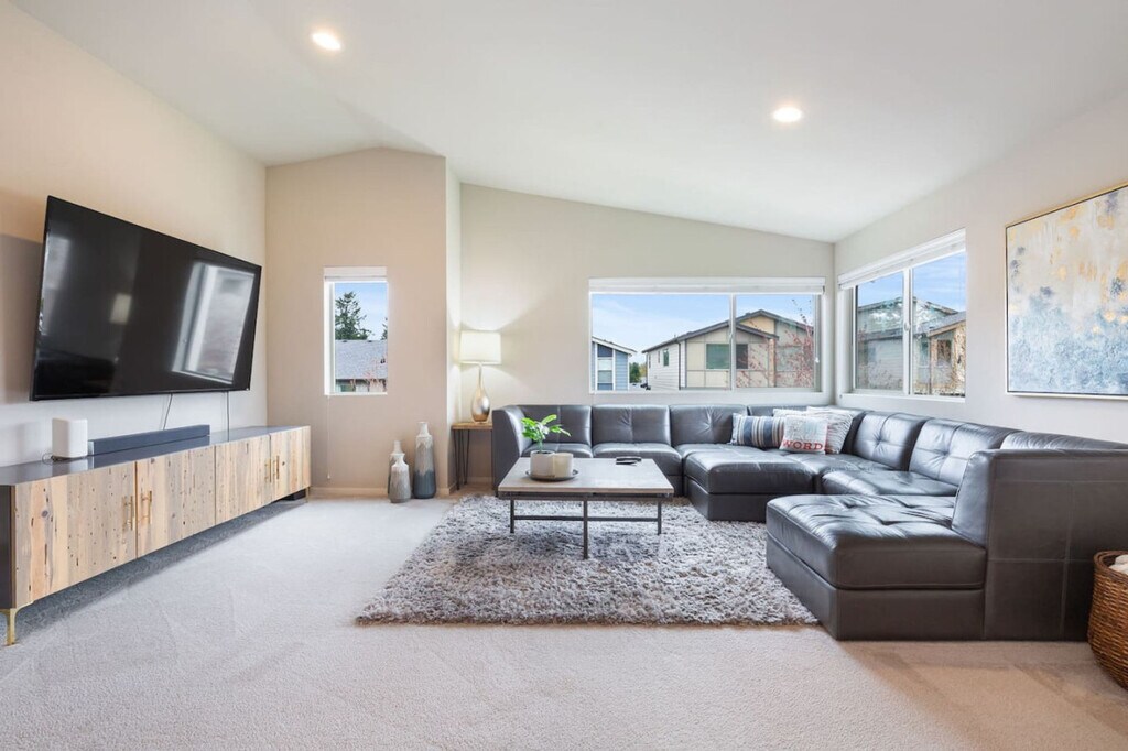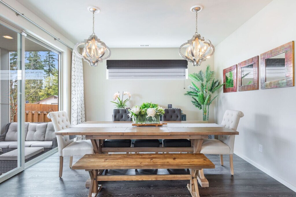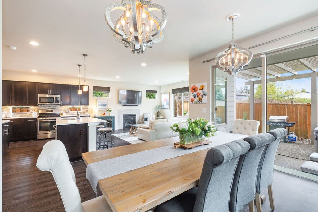 Treat yourself to the luxury of this stunning 4-bedroom, 3-bathroom house, just a 20-minute drive from the bustling streets of Seattle. Feel at home in this high-end residence, surrounded by opulent amenities that are sure to leave you in awe. The house features two living rooms, a fully equipped kitchen, and a yard with a hot tub, BBQ, dining area, and lounge. Start your day in the private gym and explore the vibrant area, then return to unwind in comfort. Enjoy free parking and Wi-Fi throughout your stay. Step into this luxurious haven in the heart of Kent, promising a relaxing getaway. The alluring living area welcomes you with comfortable seating and a smart TV, perfect for unwinding with family and friends. The adjacent kitchen and dining area provide a modern haven for any home chef, complete with modern cooking appliances and spacious countertops. All four bedrooms are designed to spoil you with comfortable beds and convenient amenities, with three bedrooms on the upper floor and the fourth doubling as an office on the first floor. The garage has been refurbished into a home gym with state-of-the-art machines, and the fully fenced backyard offers a hot tub, grill, and al fresco dining. Enjoy the luxury of free parking and an EV charger during your stay. While the house is pet-friendly, please ensure to pick up after your pets. There is a fee for early check-ins at $25 per hour and late check-outs at $50 per hour. A deep cleaning fee between $500-700 may apply for parties or events, and a $100 fine per incident for violating outdoor quiet hours. A $500 deep cleaning fee applies for smoking violations, and a $50 fine per guest for exceeding the reserved number of guests. The charming house is located in a friendly neighborhood in Kent, WA, offering a relaxing retreat after exploring the vibrant Seattle–Tacoma–Bellevue metropolitan area. Nature lovers will enjoy Lake Meridian Park and Soos Creek Botanical Garden, while history enthusiasts can visit the Kent Historical Museum. Sports fans have easy access to the ShoWare Center, and shoppers can explore Kent Station's array of shops and restaurants. With its convenient location, Kent is an excellent base for exploring Seattle's iconic attractions and the natural wonders of Mount Rainier National Park. Check-in is after 4pm and check-out is by 11am. Early check-ins and late check-outs must be approved and are subject to additional fees. No parties or events are allowed, and a deep cleaning fee will apply for violations. Smoking is prohibited, with a $500 fee for any smoke debris or smell identified. Outdoor quiet hours are from 10pm to 7am, with a $100 fine for violations. The house is pet-friendly, but pets cannot be left alone in the rental. Please ensure the number of guests matches your reservation, as a $50 fine applies for excess guests. You are not permitted to send or receive mail from this address during your stay. The house features a dedicated workspace in the fourth bedroom, which doubles as an office. This includes a desk, chair, and lamp, providing a comfortable environment for remote work. Wi-Fi is available throughout the house, ensuring you stay connected during your stay. [SI]
