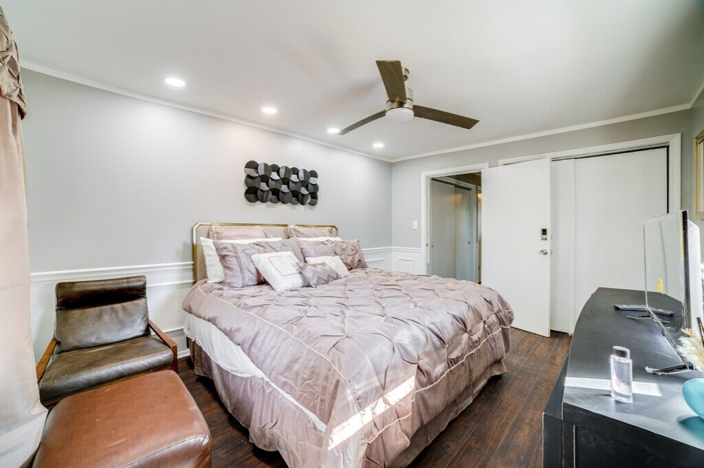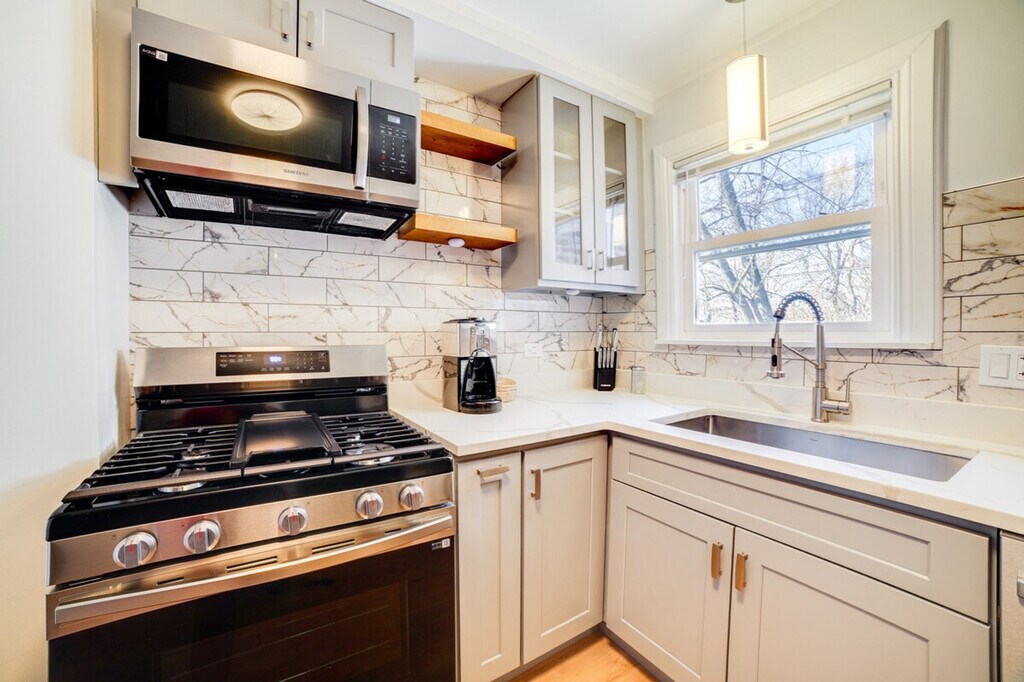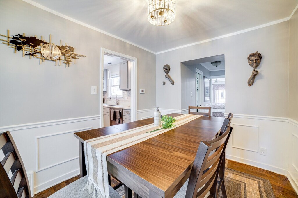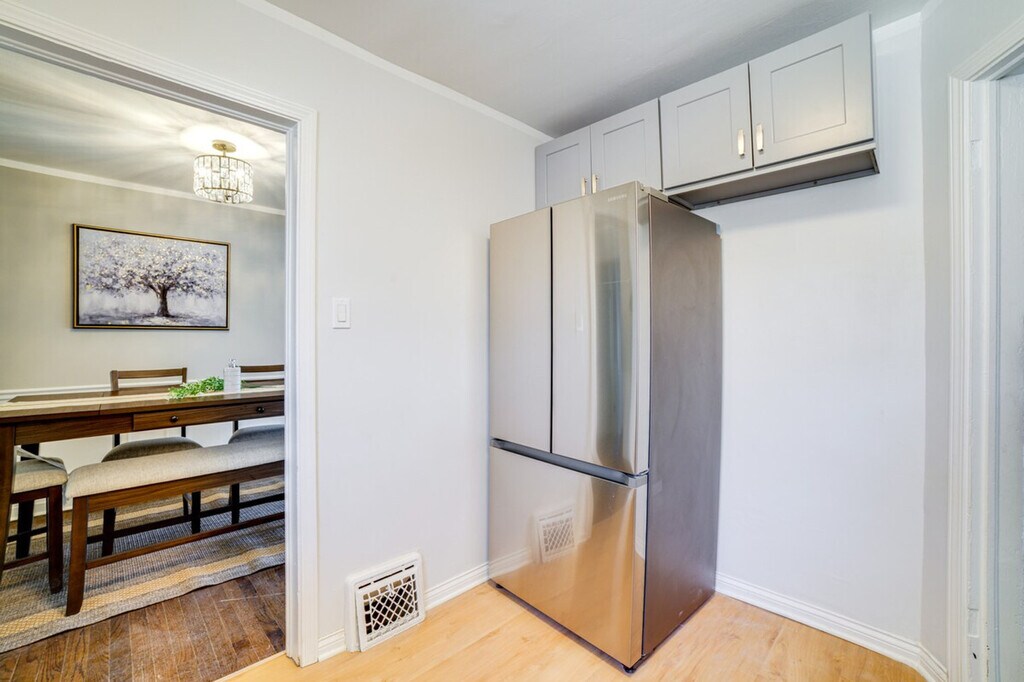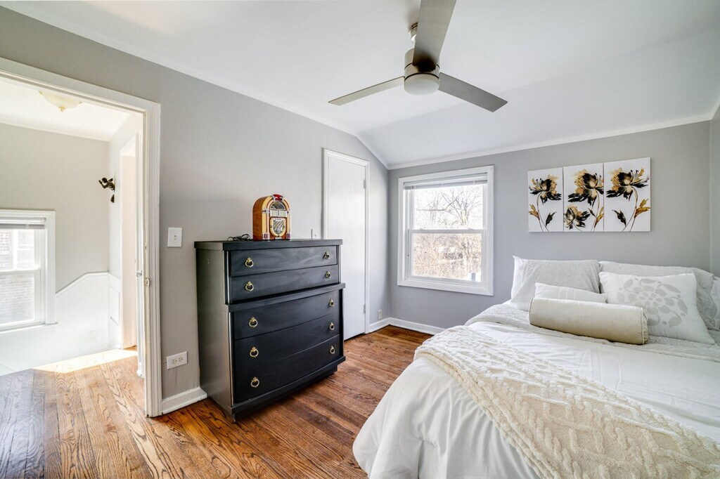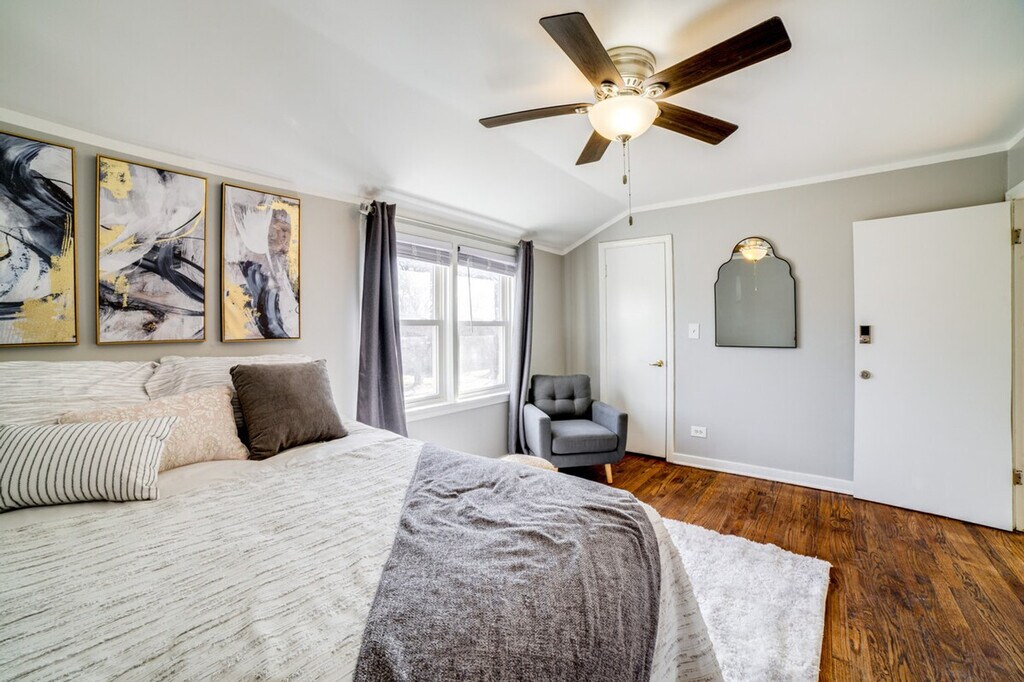 Located on Chicago’s Southeast Side, this 3-bedroom, 3-bath townhome offers easy access to restaurants, shops, parks, and public transportation. Feel at home with its spacious layout, including a bedroom and bathroom conveniently located on the first floor. Enjoy a morning coffee before exploring nearby attractions like Jackson Park, the Museum of Science & Industry, or Lake Michigan’s beaches. After a day of adventure, return to relax in the cozy living room or enjoy a meal at the 6-person dining table. The townhome features three bedrooms with a king bed, a queen bed, and a full bed, plus a sleeper sofa in the basement living room. Enjoy entertainment with three Smart TVs, Netflix, and an entertainment center with a fireplace. The fully equipped kitchen includes a refrigerator, dishwasher, stove/oven, microwave, and drip coffee maker, along with all the cooking basics you need. Central A/C and heating ensure comfort year-round, and in-unit laundry adds convenience. Free street parking is available on a first-come, first-served basis. Situated on Chicago's Southeast Side, this townhome is perfectly positioned for exploring the city. With easy access to public transportation, you can effortlessly visit local restaurants, shops, and parks. Take a stroll through Jackson Park, tour the Museum of Science & Industry, or relax on the beaches of Lake Michigan, all just a short distance away. Quiet hours are observed from 8:30 PM to 8:00 AM. The property features an exterior security camera facing the entrance for your safety. Smoking, pets, events, parties, large gatherings, and commercial activities are not allowed. Guests must be at least 25 years old to book, and a photo ID may be required upon check-in. Additional fees and taxes may apply. Enjoy free WiFi throughout the townhome, making it easy to work remotely or stay connected during your stay. Registration Number: R2 [SI]