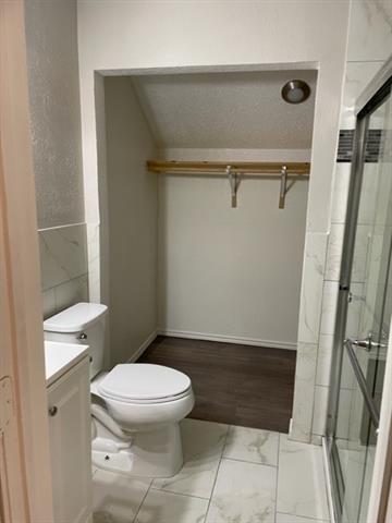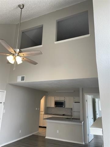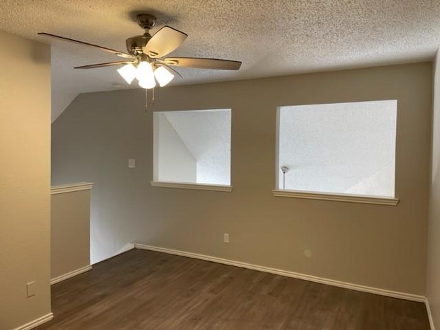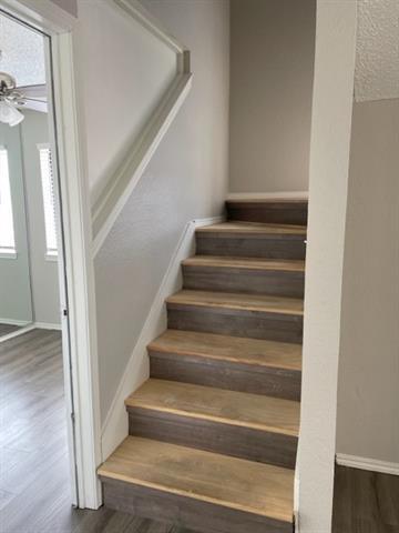 This 2 bedroom 2 bath condo has an entrance on the 2nd and 3rd floor creating a private entrance to the 2nd bedroom on the 3rd floor. Recently remodeled with new plank flooring, granite countertops, all new ceiling fans in bedrooms and bonus room. The living room has vaulted ceilings with a beautiful fireplace with stone trim that opens up to the kitchen with a granite bar top. The downstairs bathroom is off the hallway with updated glass door and modern tile. The upstairs bedroom has an ensuite bathroom with an updated tile and shower with a walk-in closet off the bedroom. The property comes with a refrigerator, cooktop and stackable washer and dryer. The balcony is off the living room and has exterior storage. This property has access to the community pool and clubhouse that are currently down and under renovation. The HOA takes care of all exterior maintenance, trash, landscaping and water. Property is all electric. Richardson ISD.