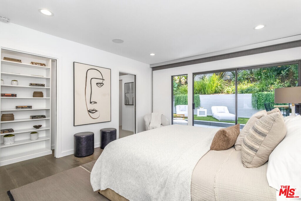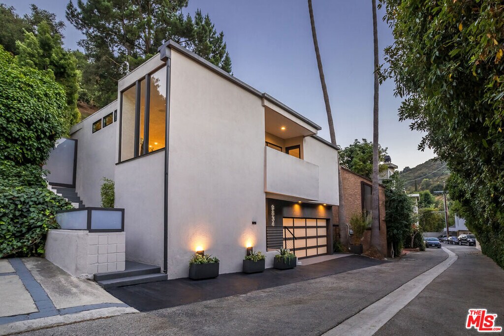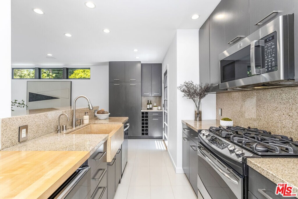 Stunning, sleek, stylish - this dramatic Mid-Century, 4 bed/3 bath home has been renovated throughout with meticulous attention to design and detail; every finish and texture selected for high-end form and function. The seamless indoor-outdoor flow creates inviting spaces for entertaining, while expansive windows maximize the lush, serene outlooks, with abundant natural light throughout. Enter through the dramatic, two-story foyer with terrazzo floors, steel and glass staircase leading to the open living spaces with hand-scraped European oak floors, European cabinetry, and quartz counters. The flexible, open-concept floor plan offers two bedrooms, two baths up, including owner's retreat with lavish-spa-like bath; two bedrooms, 1 bath down, including a custom-appointed guest suite with kitchenette, laundry and separate entrance, perfect for au-pair, in-law, home office or screening room. Generous two-car garage with ample storage has interior access to the home. MLS# 26663877