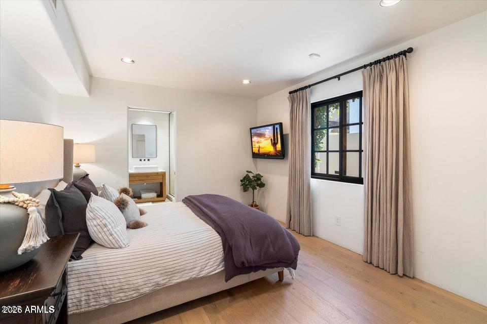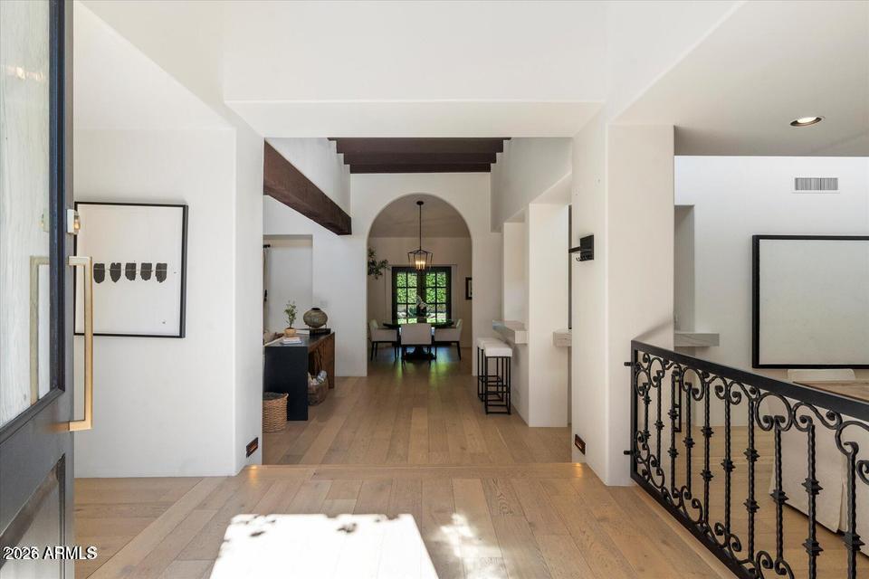 9836 E Topaz Dr,Scottsdale,AZ 85258 - Nestled in the highly sought-after Scottsdale Ranch community,this exquisite 4-bedroom,3-bathroom,furnished home blends timeless Spanish-style architecture with modern luxury. From the moment you arrive,you'll be captivated by the home's enchanting curb appeal and beautifully landscaped entryway. Step inside to discover an inviting floor plan,featuring vaulted ceilings,exposed wood beams,with stone and oak flooring carried throughout the home. The spacious living and dining areas are bathed in natural light,creating a warm and welcoming atmosphere adorned with tasteful furnishings and accessories. A gourmet kitchen boasts custom cabinetry,marble countertops,stainless steel appliances,and a breakfast nook overlooking the lush backyard.