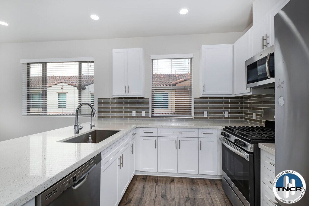 Welcome to this stunning three-story townhouse offering modern comfort, premium finishes, and spacious living throughout. Located in a secure HOA community, this beautiful home features 4 bedrooms and 3.5 bathrooms, perfect for those seeking both luxury and convenience. First Floor: Step into elegant laminate wood flooring leading to the first master bedroom, complete with carpet flooring, a mirrored closet, and a private en-suite bathroom. This level also includes direct access to the attached 2-car garage. Second Floor: Enjoy a vast and open living room filled with natural light, seamlessly connected to a modern kitchen with granite countertops and stainless-steel appliances including a stove/oven, microwave, dishwasher, garbage disposal, and refrigerator. Stylish recessed lighting, elegant chandeliers, and a convenient half bath complete this floor. Central AC and heating ensure year-round comfort throughout the home. Third Floor: The top level offers a spacious second master bedroom with a walk-in closet and a full private bathroom. Two additional bedrooms feature mirrored closets and carpet throughout the third floor. For ultimate convenience, the washer and dryer are also located on this level. Community & Amenities: Located in a desirable gated community, residents have access to a clubhouse, pool, jacuzzi, and gym. HOA covers trash services, while tenants are responsible for water, electricity, gas, and Spectrum internet ($75/month). Small pets up to 30 lbs are welcome. Nestled in the Southeast suburbs, this home offers easy access to the I-605 and I-5 freeways, as well as nearby shops, dining, and entertainment. This luxurious townhouse is the perfect blend of comfort, style, and convenience—schedule your tour today! Please note that we have 3 requirements for this property: 1: A credit score of 680 or higher. 2: No past collections or evictions on record. 3: All adults moving into the property must have a combined income of 2.5X the rent. *Every adult who is 18 years old or older must submit their application. - Small pets are allowed. A $450 deposit and a $45 monthly fee will apply for each regular pet. Please note: our policy allows a maximum of 2 animals per household. For more information, please visit or contact us: Website: Office: Email: