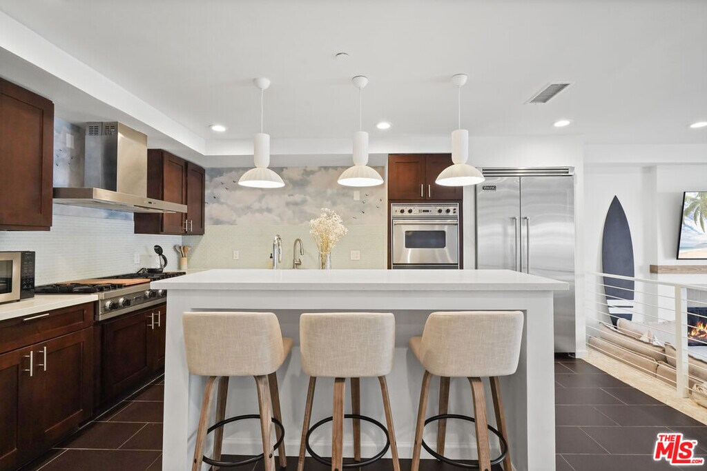 Fantastic opportunity to lease a Contemporary Furnished 3 bed 3.5 bath home in Serene Canyon Setting in Beverly Hills. Introducing a stunning furnished contemporary home nestled in the tranquil canyons of Beverly Hills. This architectural gem boasts 3 bedrooms and 3.5 baths, over 3,000 square feet of combined indoor and outdoor luxury living space, meticulously designed across three levels. As you step inside, you're greeted by a grand open floor plan encompassing nearly 2,400 square feet of interior elegance, highlighted by a sprawling private living room terrace perfect for enjoying the serene surroundings. The heart of the home features a dramatic two-tiered living and dining area with soaring ceilings, an eye-catching fireplace, and seamless access to a chef's kitchen. The kitchen is equipped with a large center island and top-of-the-line appliances, ideal for culinary enthusiasts. The residence includes two generously sized mid-level en-suite bedrooms, each adorned with designer stone-tiled bathrooms and ample closet space, ensuring comfort and style. Ascend to the ultimate retreat the master suite, nearly 800 square feet of sophistication, featuring a luxurious spa-like bathroom, an expansive walk-in closet, and a private sunken back patio equipped with a hot tub. Located in a prime, quiet, and private setting, this home offers the perfect escape while being just minutes away from the vibrant heart of downtown Beverly Hills. Discover refined living in an unbeatable location, where every detail reflects unparalleled luxury and design excellence. MLS# 25604327