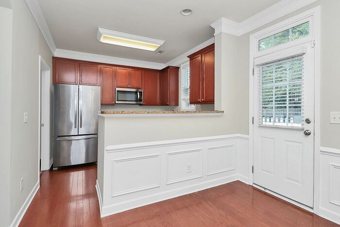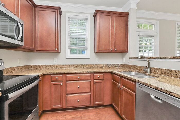 Bright and beautiful end unit, 3BD/2.5BA townhome in the Cedar Walk community. Gas fireplace in living room and hardwoods throughout main. Upgraded kitchen with stainless steel appliances and granite countertops. Fenced in patio area with off-street parking. Master bathroom features garden tub and separate glass door shower. Great location, close to Blakeney shopping center and walking distance to restaurants and more! Technology Fee: $20/Month Pet Policy: $250 Non-Refundable pet fee per pet + $20/month pet rent per pet. This property allows self guided viewing without an appointment. Contact for details.