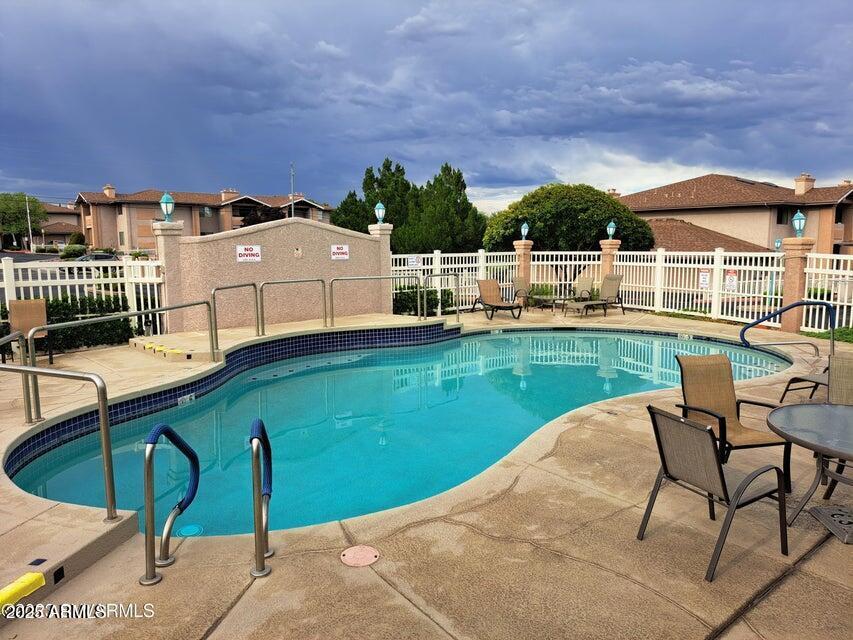 You're just in time to enjoy the pool and mountain views from your covered patio. Fans in each room along with a cozy gas fireplace. Vaulted ceilings and skylights. Separate office and dining space. Functional kitchen with mostly newer appliances. Extra storage closets. Architectural accents + neutral paint. Updated engineered flooring. In unit washer & dryer. 1 car garage plus 1 space.This community has a pool & gym,in the heart of Cottonwood,walk to post office,library,rec center & parks. Shops/dining right around the corner. 20 Min to W Sedona. 15 Min to I-17 approx Hour to Phoenix,Prescott or Flagstaff. Water and trash included. Don't delay,these go quick!