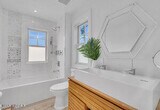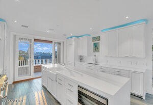 Boutique Bliss by the Beach! Ultimate 4-bedroom,3.5-bath vacation escape with a style so chic,it might have its own Instagram account! Revel in panoramic Atlantic Ocean and Barnegat Bay views. A 15-ft retractable glass wall blends indoor-outdoor spaces seamlessly. Multiple decks invite sunny siestas,while the primary suite's porch is perfect for storm-watching. Enjoy king-size beds in guest rooms,two theaters for Oscar-worthy movie nights,and a gym. Dine alfresco or create culinary delights in the state-of-the-art kitchen with center island and adjoining dining area. With parking for 8 cars and ocean sounds as your backdrop,this is not just a rental; it's a lifestyle. ***Rental Weeks available August through December. ***