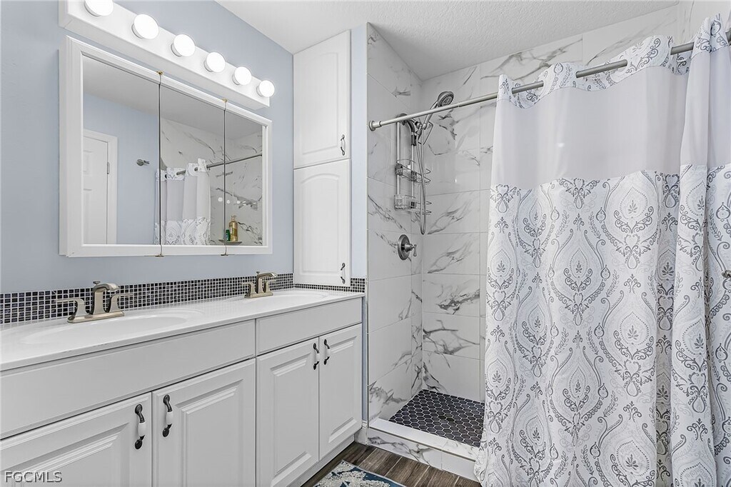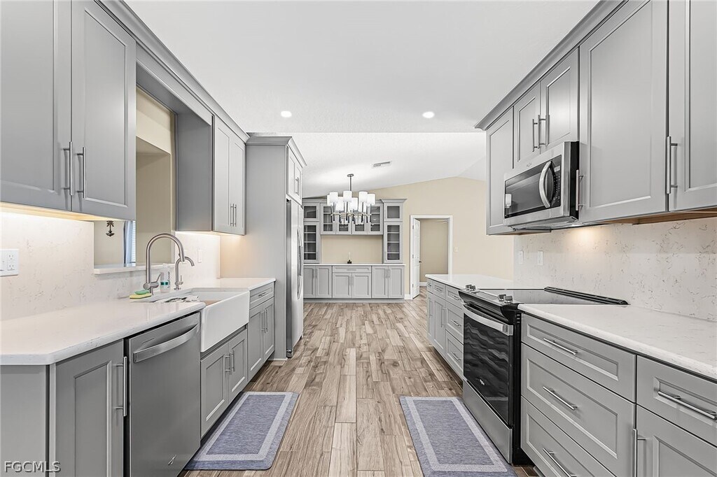 Step into this beautifully remodeled country home and feel instantly welcomed by its bright,open layout and inviting living spaces. The spacious living and dining areas flow effortlessly into a stylish,updated kitchen featuring newer cabinets,solid-surface countertops,a stainless steel farm sink with reverse osmosis system,new appliances,a movable island,and a sun-filled breakfast nook that opens to the lanai. A massive rear great room offers endless possibilities with wraparound bookshelves and a built-in desk—perfect for entertaining,working from home,or relaxing with family. The spacious primary suite includes a walk-in closet and a fully remodeled bath with a tiled walk-in shower,double sinks,and linen storage. The oversized guest bedroom and updated guest bath add even more comfort. Enjoy peace of mind with a new A/C,metal roof on both the home and shed,a privacy-fenced backyard,and a newer well pump. Located just steps from the Caloosahatchee River,this home delivers space,style,and a relaxed Florida lifestyle.