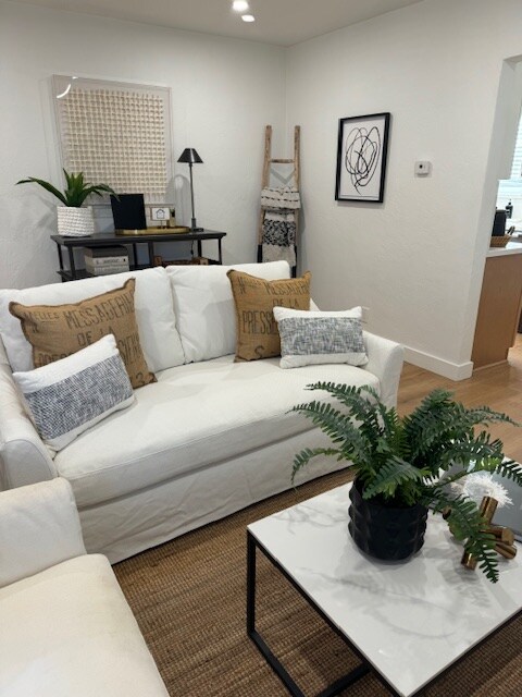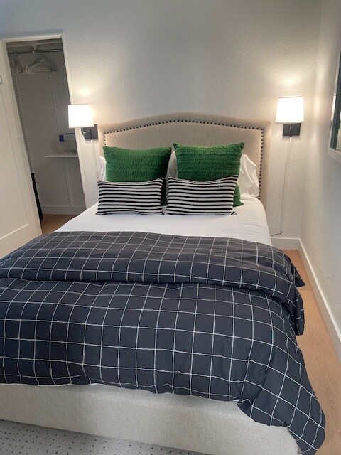 Property Id: 2285565 Fall in love with Oakland's wonderful mild climate year round in this home! I have a passion to provide a resort style experience with feelings of luxury and comfort. Providing a beautiful home away from home. It is freshly renovated and completely ready for your arrival! New kitchen. New bathroom. New floors, fresh paint, new landscaping and everything else has been beautifully refreshed and renovated. I am a stager and this property is a beautiful representation of the quality of my products and style . Both bedrooms include a desk, chair, lamp, keyboard and "office supplies" box. In addition, the Primary bedroom has a monitor. We would be happy to provide a monitor for the second bedroom if requested. It has both styles of pillows (down and fiberfill) and a personal Dyson Hot/cool fan to keep you comfortable. Windows have both blinds and room darkening draperies. This is european style bathroom with it all! Porcelanosa shower enclosure with hand-held shower head, Porcelanosa floating cabinet, backlit LED mirror with a defogging mode, Porcelanosa toilet, RH train rail with loads of towels, Dyson quiet hair dryer and loads of amenities. This PRIVATE gated backyard has a special fun spot with Veuve Clicquot cornhole! or Create you own selfie / ZOOM spot under the huge clock above the sofa. There is a full size BBQ with (2) canisters of propane (the second is a backup) and outdoor dining ware. The garage is perfect if you need the extra space or want your car in a garage. We have conveniently provided a rack with storage tubs for your personal use. There is a limited number of pieces for yoga... mats, balls, dumbell, blocks. ALL utilities are FREE /included: gas, water, electricity, garbage, gardening! The cap is $500.00 in total.