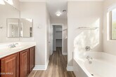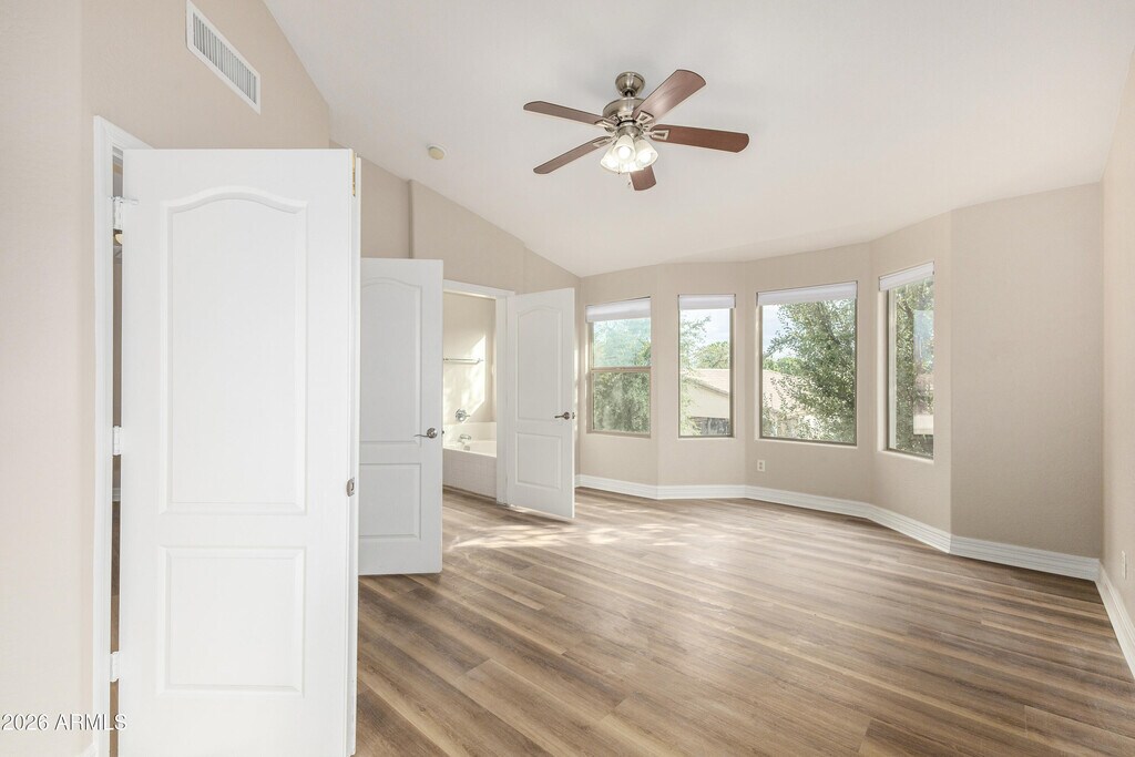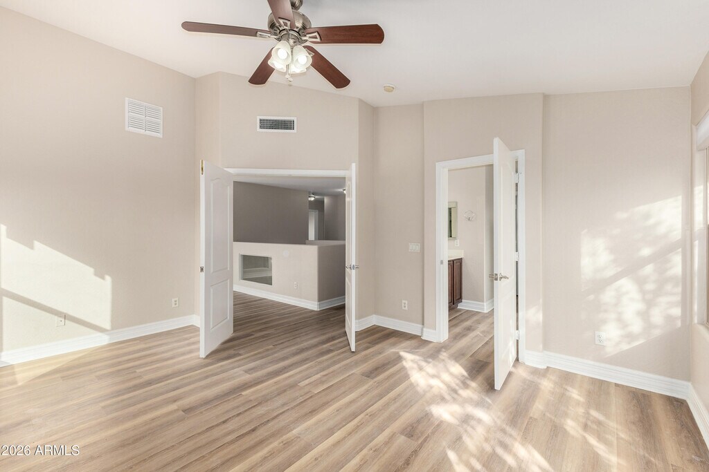 Gorgeous,updated home in the desired gated community of La Fortina. This amazing home will truly not disappoint! New interior paint,brand new vinyl flooring,throughout with 5' baseboards,new window blinds,newer appliances,including brand new stove and microwave,covered patio and landscaping design in the back yard! This home offers a beautiful kitchen equipped with quartz counters,raised-panel rich wood cabinetry,large island with breakfast bar and plenty of storage space. Separate family room and living room/dining room with high ceilings! Upstairs offers 4 bedrooms and a grand loft that overlooks the living/dining area. Owner suite bedroom with En-suite and walk-in closet. Landscaping maintenance included in the rent. Public Aquatics Center located across the street at Skyline High School. Wonderful location and quick access to freeways.