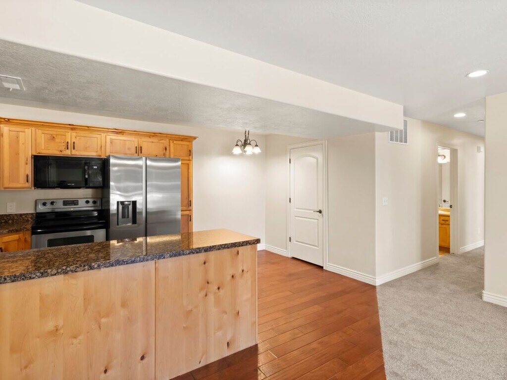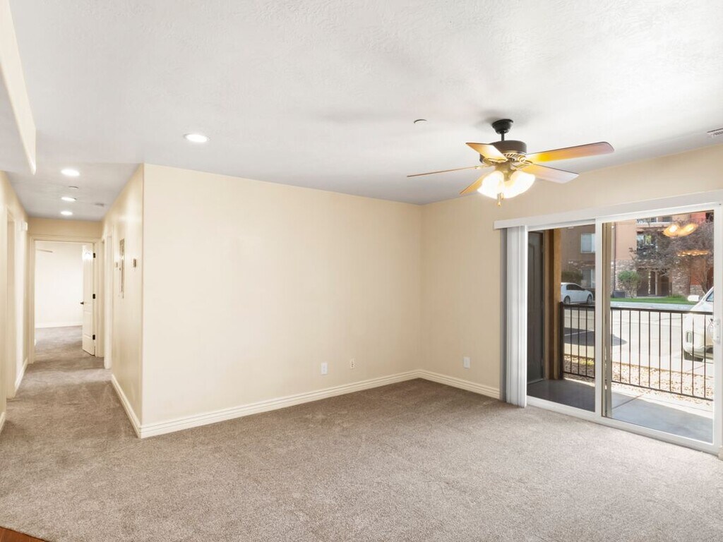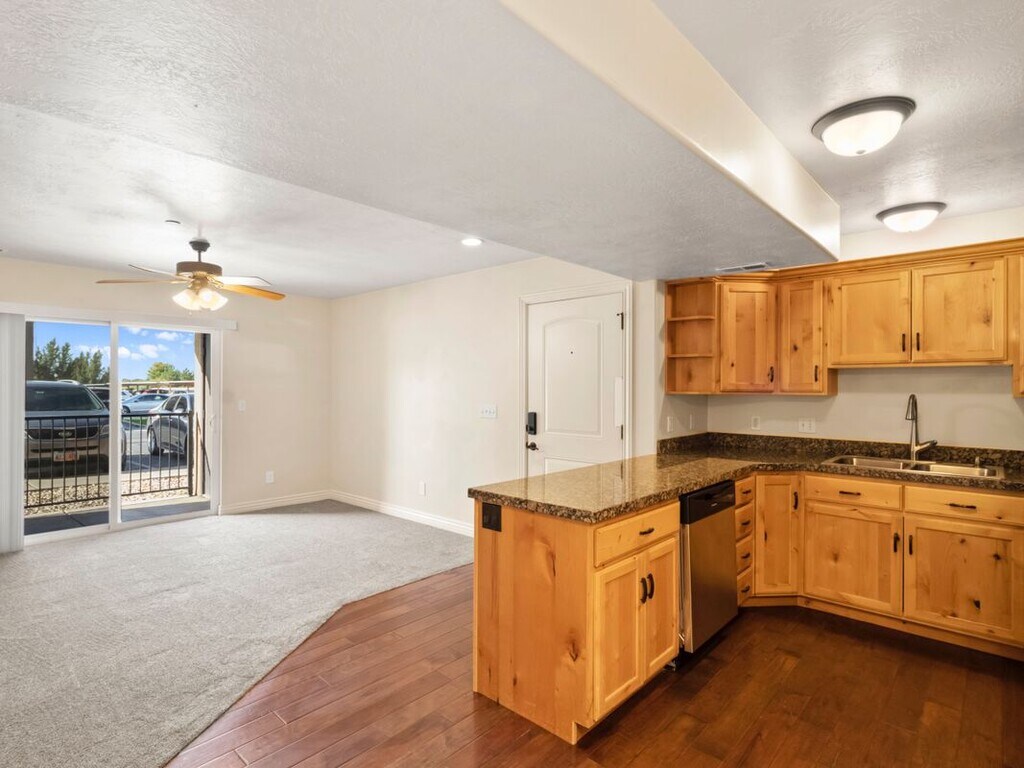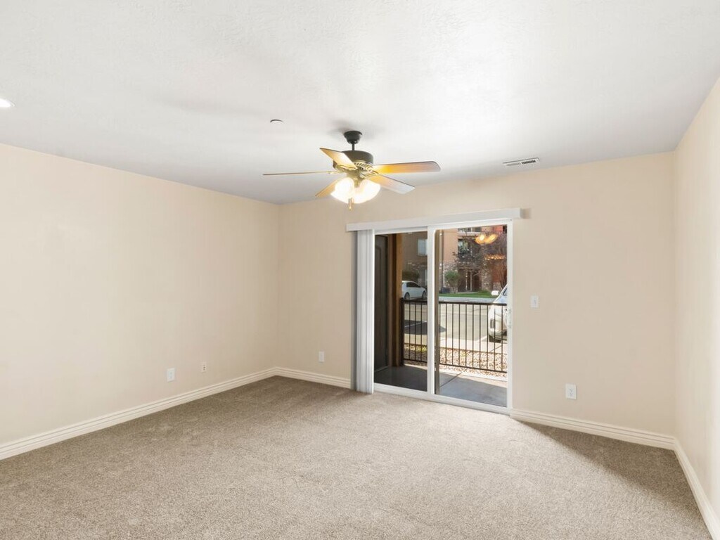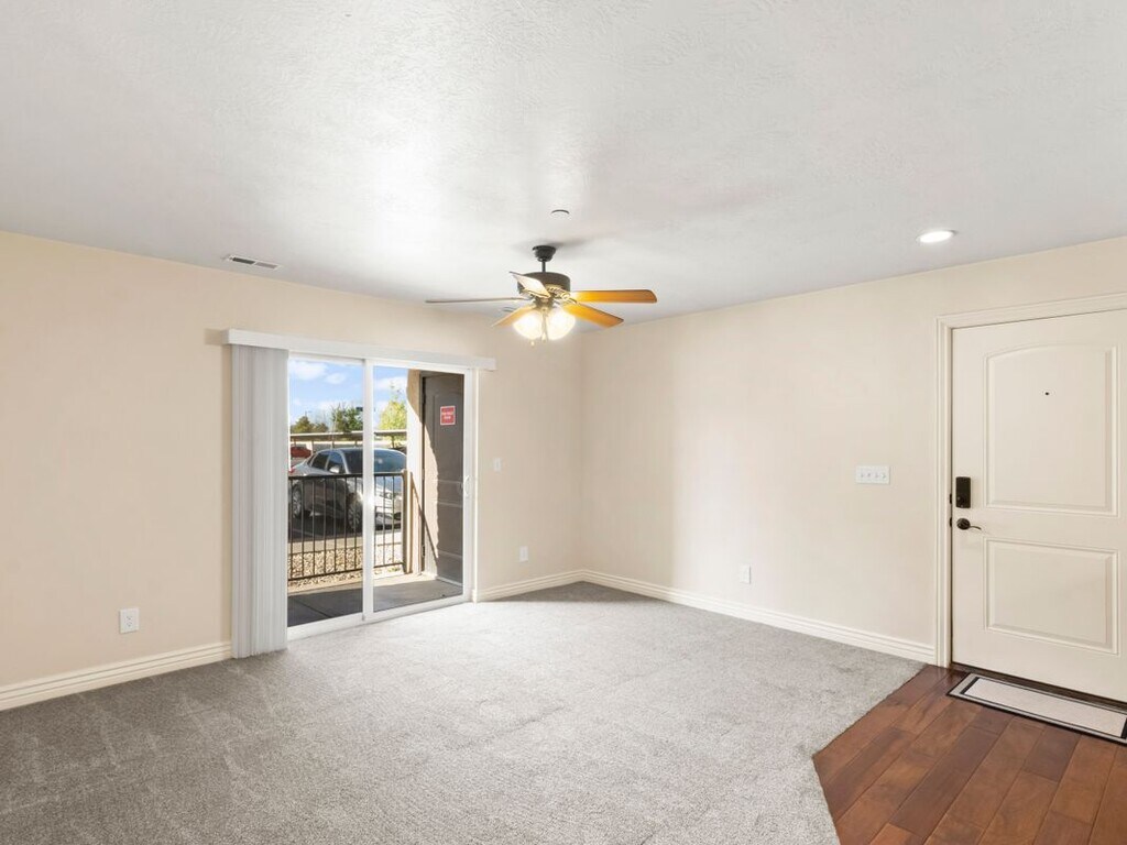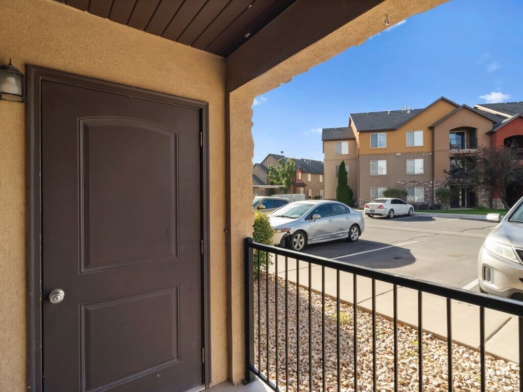 A coveted main-level condo in Pleasant Grove, featuring 3 bedrooms, 2 bathrooms, and in-unit laundry. The open floor plan includes a spacious primary suite with an ensuite bathroom offering double vanities and a walk-in closet. Upgrades include brand-new carpet, hardwood floors, granite countertops, and stainless steel appliances in the kitchen (including a new dishwasher & fridge), plus a covered patio with storage. The condo comes with two dedicated parking spaces, one covered, and the HOA includes high-speed internet, water, sewer, trash & insurance. Community amenities further elevate the home with a pool, hot tub, clubhouse, fitness center, playground, and sports court. This updated condo is ideally located less than 5 minutes from I-15 and close to shopping, restaurants, and more.