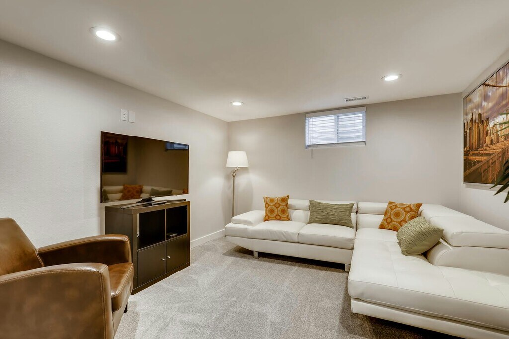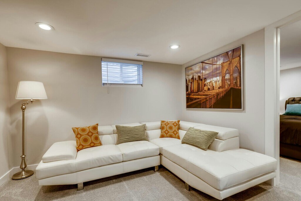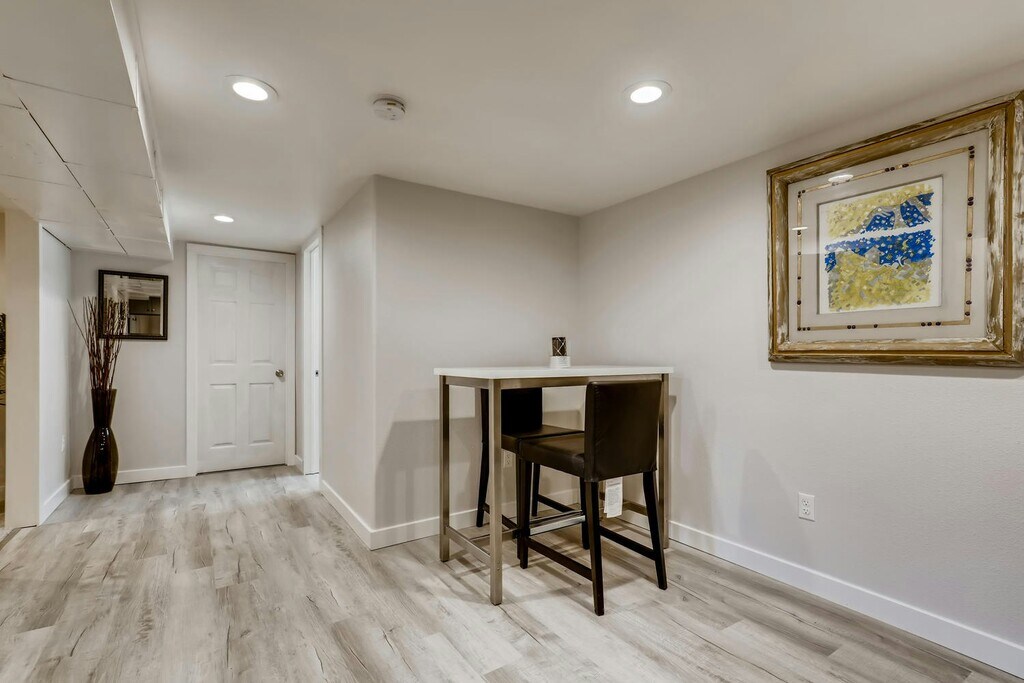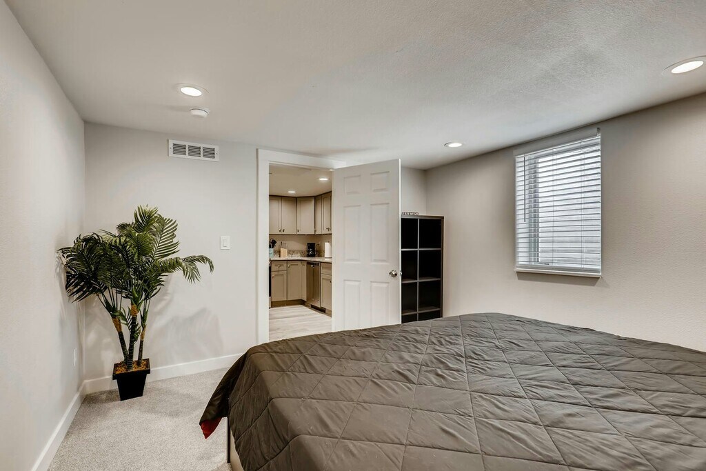 Welcome to this charming FULLY FURNISHED basement suite located at 9875 E 22nd Ave, Unit #B, in the heart of Aurora, CO. This delightful up/down duplex offers a spacious 1,000 square feet of living space, thoughtfully designed to provide comfort and convenience. Built in 1953, the property exudes a classic charm while featuring modern updates for today's lifestyle. This light and bright basement suite boasts two generously sized bedrooms each with a KING SIZE BED and FIRM MATRESSES providing ample space for relaxation and rest. The 3/4 bathroom (with shower) is well-appointed with contemporary fixtures, ensuring a pleasant experience. The open-concept living area is perfect for entertaining or unwinding after a long day, offering flexibility in layout and design. Extra space to put in a desk to create a work from home. Enjoy movies or chilling in your living room with high speed internet to stream movies. The eat in kitchen is fully equipped with essential appliances, dishes, cookware and cutlery. Natural light filters through the windows, creating a warm and inviting atmosphere throughout the home. Located in a vibrant neighborhood, this property offers easy access to local amenities two blocks from STANLEY MARKETPLACE, 1 MILE FROM CU MEDICAL CAMPUS and tons of green space. Fully fenced rear yard with private street entrance as well as private entrance to your dwelling. Includes all utilities (gas, electric, water, internet, and landscaping). A garage parking space is also available. 2 month minimum lease available.
