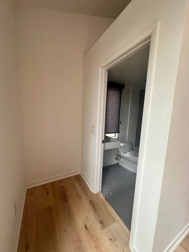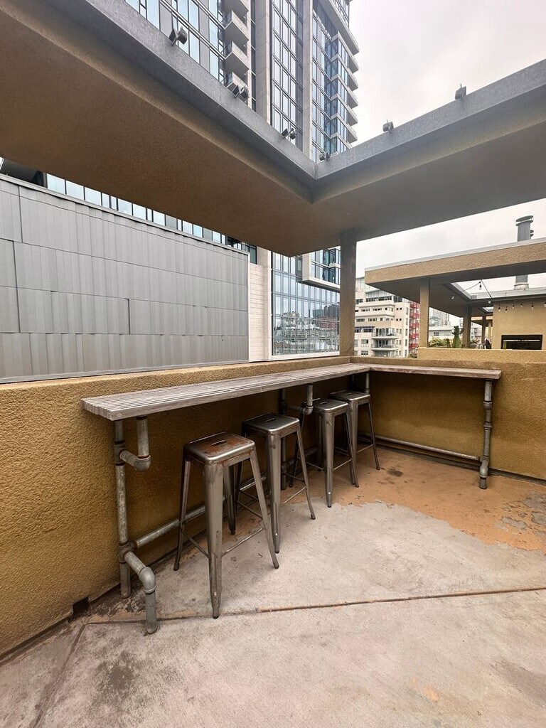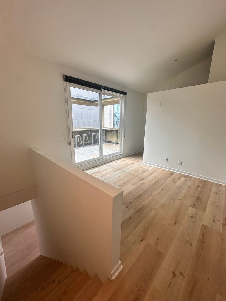 Step into this sleek and modern two-level loft designed by renowned architect Jonathan Segal, located in the heart of East Village. This contemporary home boasts an open living, dining, and kitchen area on the entry level, complemented by a private patio perfect for outdoor dining or relaxation. The upper level features a spacious bedroom and bath that opens up to a rooftop deck, providing a unique and inviting urban retreat. Highlights: • 660 sq. ft. of thoughtfully designed living space • New flooring throughout and an on-trend kitchen • In-unit laundry for added convenience • One dedicated parking space in a gated lot. Enjoy the vibrant lifestyle of East Village, just a short distance away from popular restaurants, Petco Park, and downtown attractions. This unit is located on the second floor of a boutique complex with 36 units. Please note there is no elevator access.