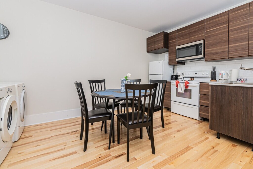 Feel at home in this newly renovated apartment in one of Montreal's trendiest neighborhoods. This walk-up apartment is only accessible by stairs and there is no elevator. This apartment welcomes 6 guests and features a fully equipped kitchen. Relax or entertain in the spacious living area, which includes a Smart TV. Stay seamlessly connected with high-speed Wi-Fi throughout your stay. Indoor parking with in/out privileges is available for a separate fee depending on the length of your stay. A variety of cleaning services, including biweekly or monthly options, are available for an extra charge. No parties of any kind or loud noises that can alter the harmony of residents are allowed. Smoking (including cannabis/cigarettes or any kind) is not permitted inside the apartment, balcony, or the building. Please care about your home away from home. [SI]