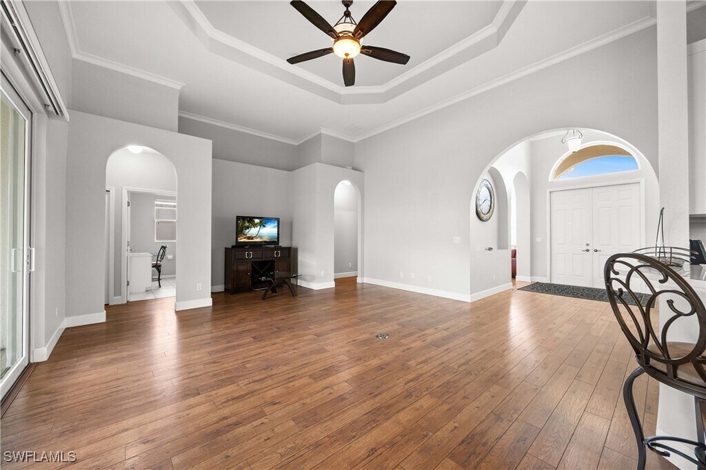 Gorgeous Rental in the popular,gated Spanish Wells community available with flexible lease - short or long term! Experience the best of Florida living in this beautifully maintained residence located just minutes from the sugar-sand beaches of Bonita Beach. This well-maintained home showcases a bright,open layout with impressive volume ceilings,elegant crown molding,and architectural tray ceilings that add both style and sophistication throughout the main living spaces and primary suite. The thoughtfully updated kitchen is a standout,featuring quartz countertops,custom cabinetry,and modern appliances—ideal for everyday living and effortless entertaining. The spacious primary retreat offers plush carpeting,dual walk-in closets,double vanities,a soaking tub,and a separate walk-in shower,creating a private,spa-like escape. Quality upgrades are evident throughout,including engineered hardwood flooring in the main living areas,impact-resistant windows and sliders,and an oversized garage with new epoxy flooring and generous storage space. Designed with comfort and accessibility in mind,the home also features wheelchair-accessible extra wide doorways and a roll-in shower in the guest bathroom. What truly sets this home apart is its exceptional convenience—with grocery stores,hardware stores,restaurants,cafés,and everyday shopping located just outside the community entrance. In addition,quick access to the nearby highway makes commuting effortless and places Southwest Florida International Airport just 20 minutes away,along with easy access to Naples,top medical facilities,fine dining,and upscale shopping. This home delivers the perfect balance of luxury,accessibility,and location!