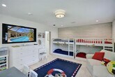 Welcome to Pine Knoll at The Falls — a rare estate home on an oversized corner lot offering exceptional space, privacy, and fully upgraded living. Introducing a resort-style home situated on a private builder's acre and a total of 3,356 sqft. this property offers a luxurious and comfortable living experience. The main house features three bedrooms and two bathrooms, while outside there is a separate cabana with one bedroom and one bathroom. The outdoor area has a screened-in eight-foot-deep pool with a beautiful waterfall and heater, for your convenience. Additionally, there is an outdoor kitchen with a charming Chicago brick under a tiki-style roof. Inside, the home offers an open-concept layout, with the kitchen featuring high-end Viking appliances. The home comes fully furnished and decorated, making it move-in ready for you. This property is the epitome of turnkey living, offering a harmonious blend of comfort and style.