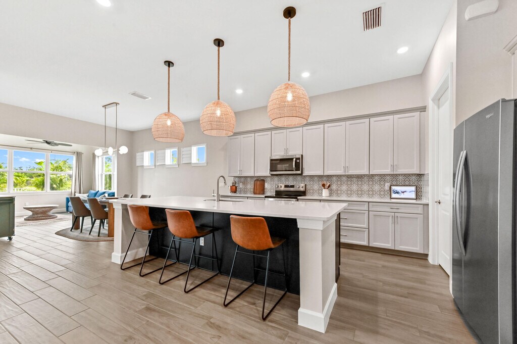 Stunning 4 Bedroom, 3 Bathroom ''Stellar'' Model with Lake Views in Gated Highpointe Community! Welcome to the Stellar model in the highly sought-after Highpointe community located in Stuart, FL. This beautifully upgraded one-story home offers 2,658 square feet of living space, featuring an open-concept design. Situated on an oversized, pie-shaped lot with breathtaking lake views, this home boasts more than $50,000 in recent upgrades, including a patio screen and extension, a fully fenced yard for privacy, stunning landscaping, improved drainage solutions, and a custom-built drop zone that adds both style and functionality. Plumbing and electrical upgrades were placed with thought for every convenience!