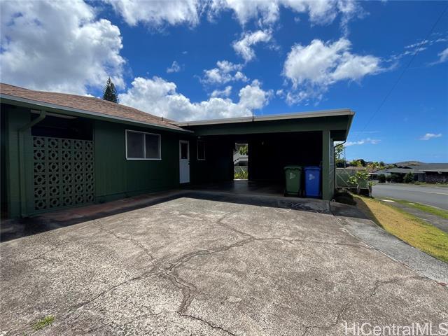 Located above Aiea High School is this four bedroom, two bathroom single story home. The spacious living area includes a living room and family room that opens up to a the backyard area. The kitchen/dining is generous in size and the home also has a separate laundry room and additional toilet room in the carport. Great property! Appliances include an oven, range, refrigerator, washer, and dryer. Yard service is included. There is additional storage in the 2-car carport.