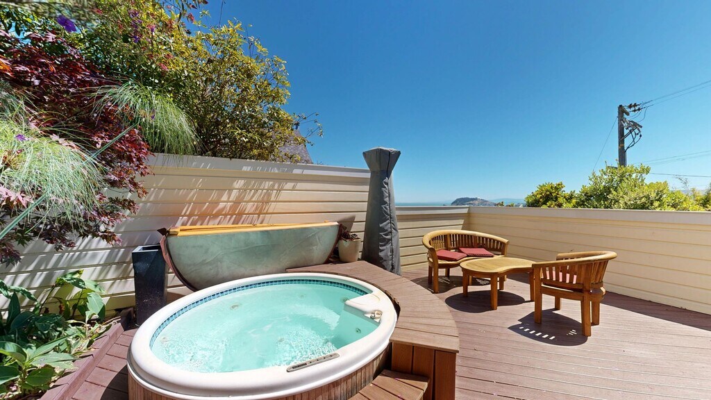 Welcome to the Gorgeous Three Bed & Three Bath Bernal Heights home with Amazing views, located in the heart of San Francisco, CA. This fully furnished home boasts an open floor plan, a dine-in kitchen, and a cozy fireplace, creating a warm and inviting atmosphere. The oversized primary suite features a private view deck, offering breathtaking views of the city. An additional oversized bedroom comes with an attached office/sitting room, perfect for work or relaxation. The home also includes a hot tub and multiple decks with views, providing ample space for outdoor enjoyment. The property comes with a one-car garage equipped with a fast car charger, making it ideal for electric vehicle owners. This well-maintained home is situated in an ideal Bernal Heights location, offering easy access to the city's amenities. Experience the best of San Francisco living in this stunning home.