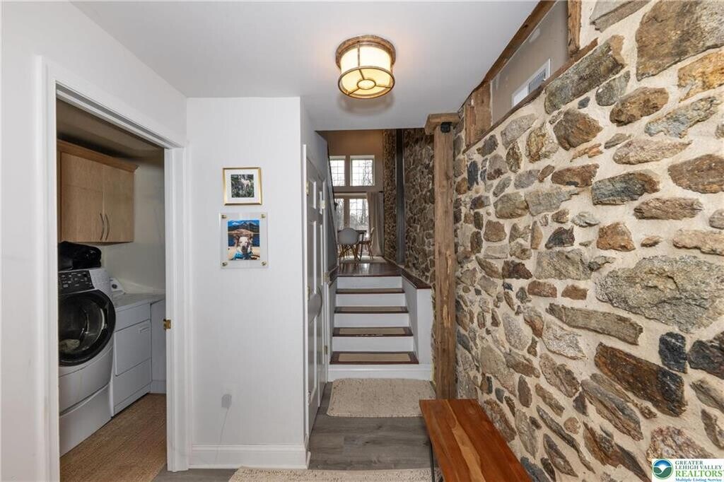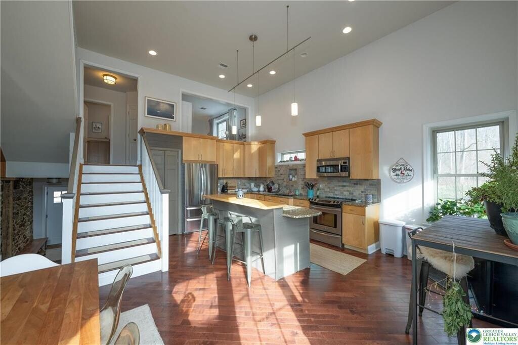Tucked away in a peaceful, secluded setting, this beautifully converted modern-rustic barn offers a rare blend of character and contemporary comfort. The 2-bedroom, 1.5-bath residence showcases a stunning gourmet kitchen, soaring ceilings, and rich hardwood floors throughout. Exposed stone walls and original pegged beams highlight the home’s authentic craftsmanship, while a cozy pellet stove adds warmth and charm. Step outside to the private deck and enjoy the surrounding tranquility—perfect for relaxing or entertaining. A truly unique retreat for those seeking privacy, style, and timeless character. Pets considered. Non-smoking property.