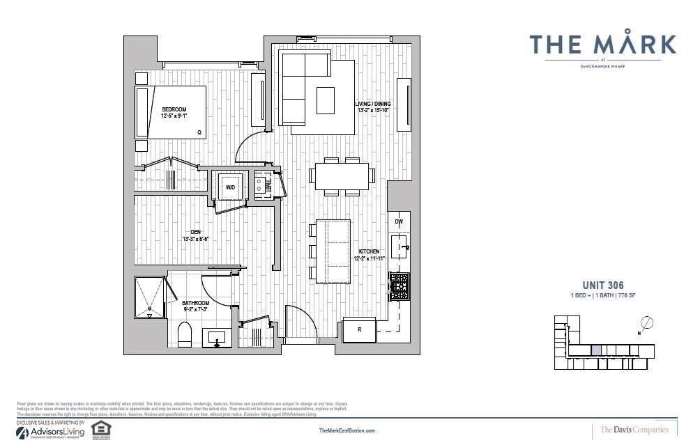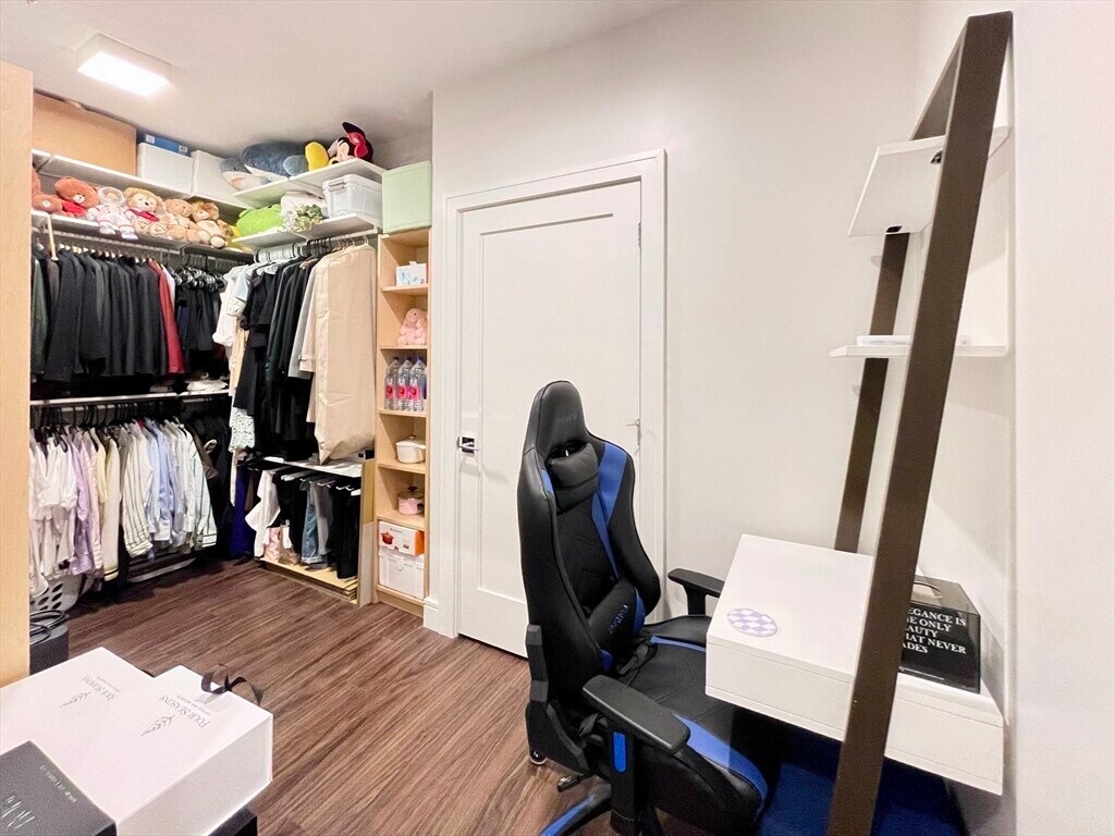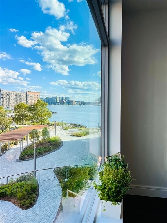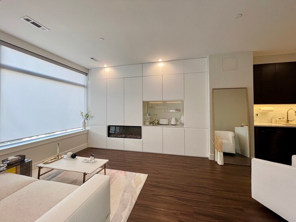 Lovely 1-bed plus Den unit in The Mark. This bright and sunny unit features Bosch appliances,custom black cabinets,and a waterfall white quartz countertop,walnut hardwood flooring,oversized windows,unobstructed Boston harbor views,lots of sunlight,customized closets,and an electric fireplace in the living room. The den space can be used as an office or a second bedroom. The building features a 24/7 concierge,harbor-view terrace,golf simulator,billiards room,library,fully equipped fitness center & pet spa,and a beautiful garden with a stove & grill. Enjoy the local harbor walk,parks,and supermarket,all within steps of the T station and water taxi,as well as easy access to downtown and the airport. MLS# 73474938