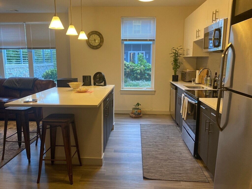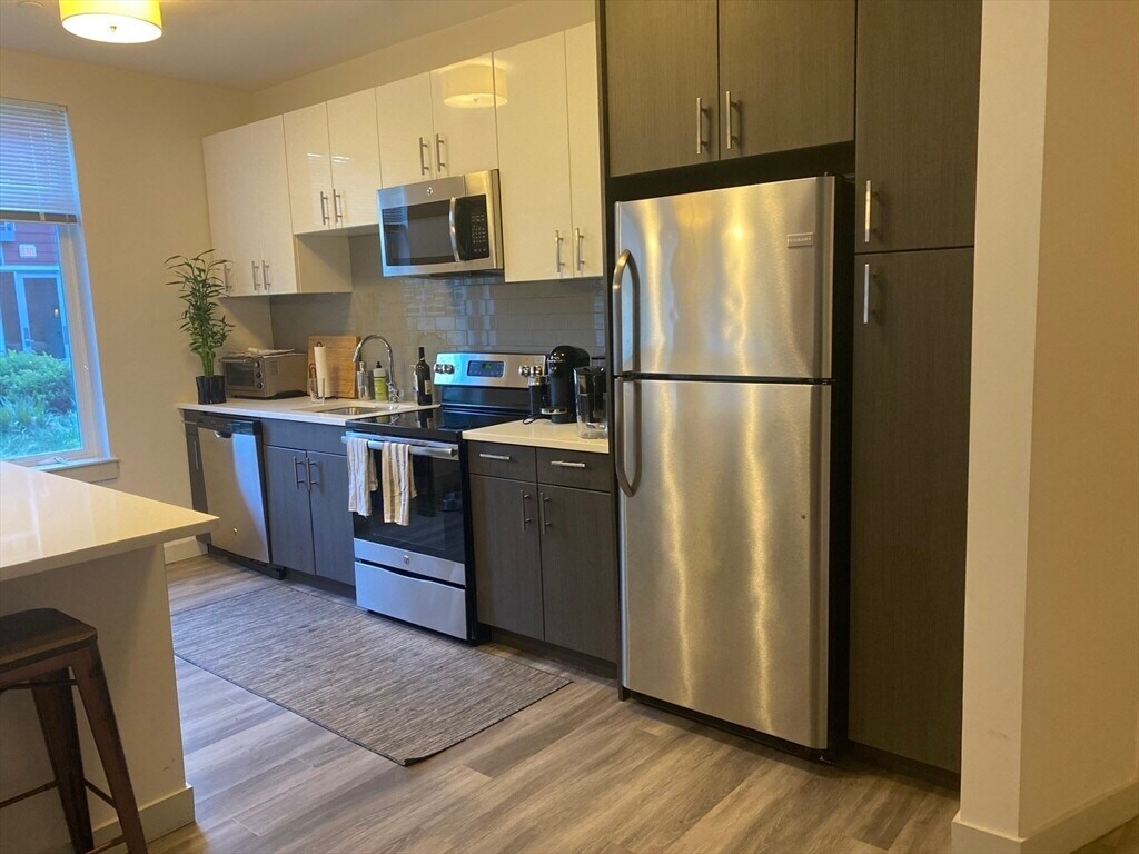 Discover modern living in the heart of Brighton's Oak square. This spacious 1 bedroom condo includes a chef's kitchen,in unit laundry,central heat + AC,a private storage locker and one garage parking spot included. Pets negotiableThe building elevates your lifestyle with premium amenities such as a fitness center,billiards room,media room,bike storage,and a beautifully landscaped courtyard with grills. Video available upon request. MLS# 73455515