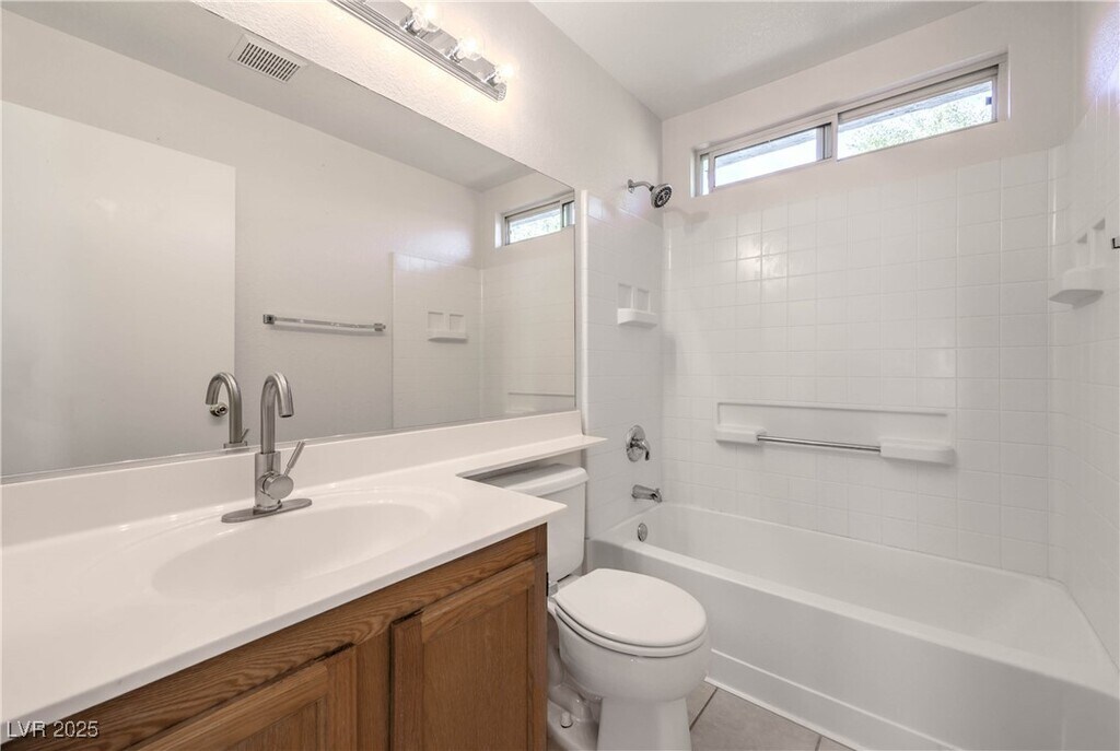 This beautiful 3 bed/2.5 bath two story home 1461 square feet is located in a Gated Community in Peccole Ranch! Two car attached garage. Formal living room. Dining area. Kitchen has tile counter tops and tile floors! All bedrooms are upstairs. Master bedroom has a walk-in closet. Master bathroom has double sinks. Has a backyard with a patio! Has a Community Pool!