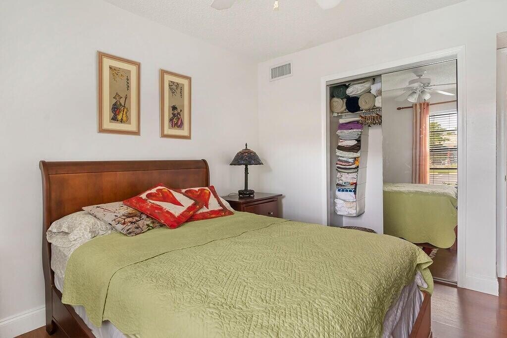 Charming first floor, 2 bedroom/2 full bathroom. Available seasonally 3 months $3,200, 4+ months $2,500 or annually at $2,250. Fully furnished, turn key. All ages welcome! Gated community. Just steps away from the pool. Well maintained condo. Kitchen features stainless steel appliances, granite counter tops, plenty of storage. Tile throughout - no carpet! Screened patio with dining set, full size washer and dryer. Close to shopping, restaurants, I-95 and turnpike.
