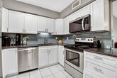 Enjoy comfortable living in this updated, spacious 2BR/2BA condo in Bent Tree Gardens, just steps from the pool. Home features bright living and dining areas, and a screen-enclosed patio. The updated kitchen offers white cabinets, granite counters, and stainless steel appliances. Primary suite includes a walk-in closet and en-suite bath. Neutral tile and laminate floors, open layout, and great natural light. Community offers a clubhouse, fitness center, billiards, and a resort-style pool. Close to shopping, dining, highways, and airports.
