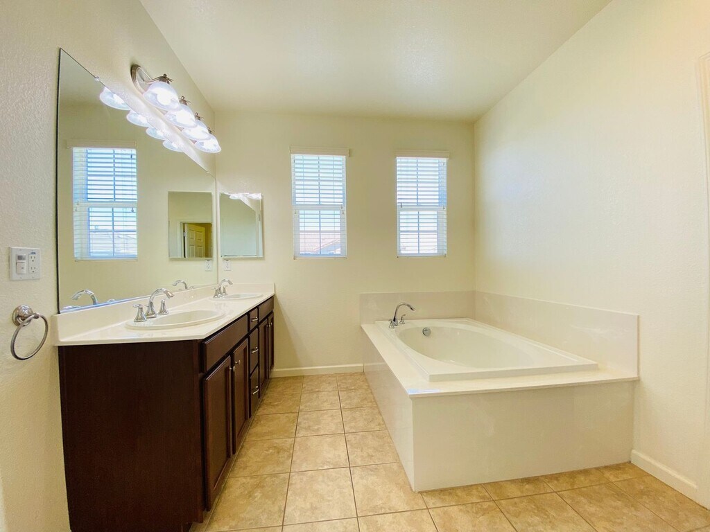 This beautiful two-story home is a grand house to come home to. Its large and spacious rooms give you an open feel. Freshly painted inside, as well as new flooring. The front living room has an extra open room that can be used as an office or formal dining room. Three bedrooms are located upstairs including the primary bedroom. One bedroom downstairs with a full bath with a walk-in shower. The primary bathroom has double sinks with a large counter, a separate tub and a walk-in shower and closet. Large family room with fireplace that opens up to the kitchen, which includes gas stove, dishwasher, and built-in microwave. Slider that opens to the backyard with a large patio. The laundry room is upstairs and includes a washer and dryer. Minimum $100K renter's liability insurance required during tenancy. Good Credit is a must! All Realty Roundup residents are enrolled in the Resident Benefits Package (RBP) for $45/month which includes quarterly HVAC filter delivery, liability insurance, credit building to help boost the resident’s credit score with timely rent payments, up to $1M Identity Theft Protection, move-in concierge service making utility connection and home service setup a breeze during your move-in, our best-in-class resident rewards program and much more! To get the most out of the RBP residents can upgrade into our premium RBP package for ($59.95/month) which includes on-demand pest control. More details upon application. PROPERTY TOURS: 1) It is recommended that you view the online virtual tour and photos of the home. 2) Please drive by the home to make sure it's a neighborhood you like. 3) Submit your completed application online at www.realtyroundup. com 4) Upon approval for the property, you must then view the property with one of our staff, prior to paying your security deposit.