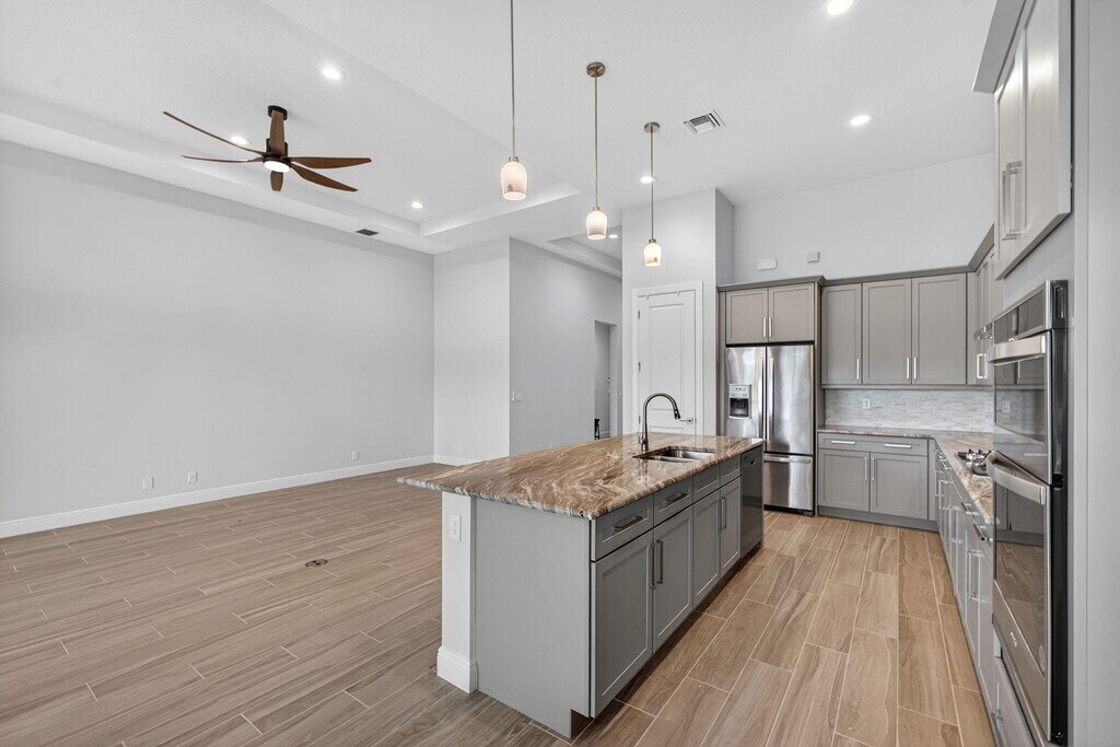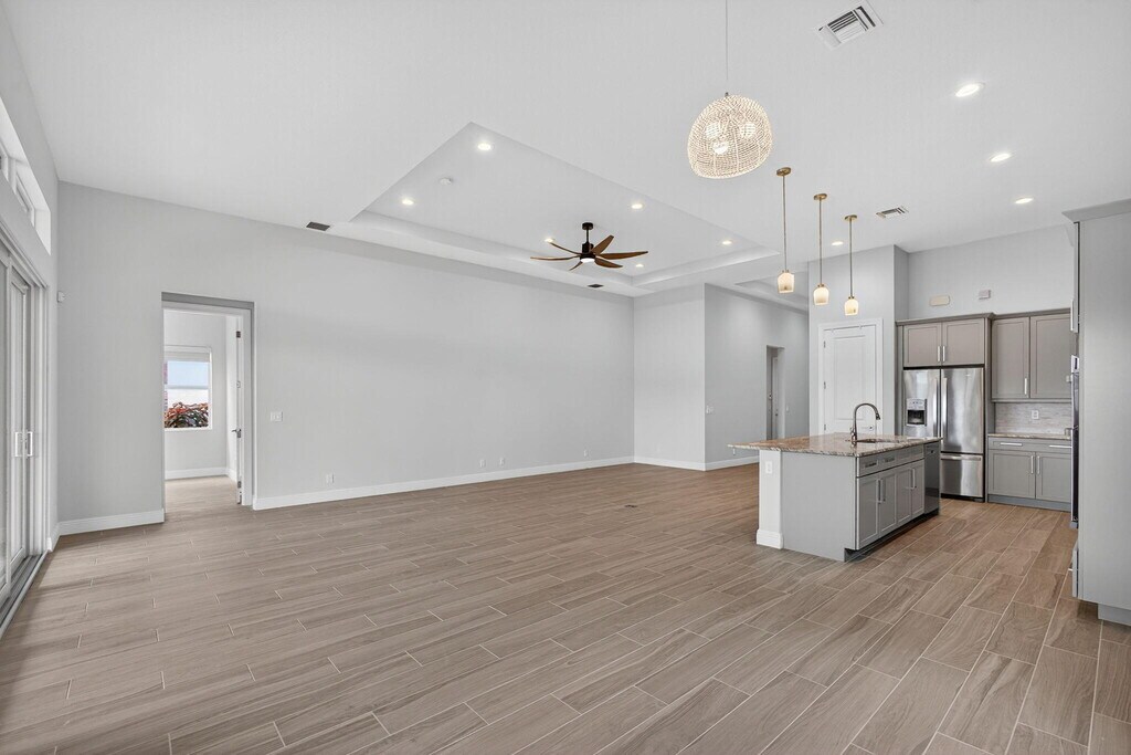 Toll Brothers 55+ community in Palm Beach Gardens, Florida. The Maya Contemporary is most welcoming floor plan, featuring 4 bedroom, 2.5 baths, large kitchen, and extended covered patio with outdoor kitchen and heated spa. Very private location, right across from clubhouse is luxury like a 5 star resort amenities. Walk to the pickleball field, and tennis courts. Resort style clubhouse is a highlight of the community. It has a large pool, fitness center, tennis and pickleball courts.