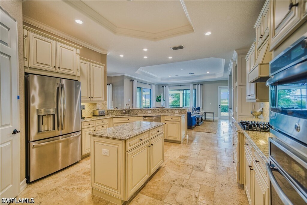 Superb fully furnished residence available for rental in Treviso Bay. Three bedrooms,2 baths and loft upstairs in addition to the converted den to bedroom and master suite downstairs. A large Chef’s kitchen with granite counter tops,breakfast nook and dinning complement the elegant great room. Spacious pool area with outdoor kitchen. Treviso Bay amenities include 2 clubhouses,restaurants and bars,large resort-style pool,lap pool,state of the art fitness center with access to personal trainers,aerobics,spa,walking and bike paths,tennis courts,basketball courts,Bocce ball. Available for off-season until November 2026. Naples and Marco Island dining and beaches are only 15 minutes away