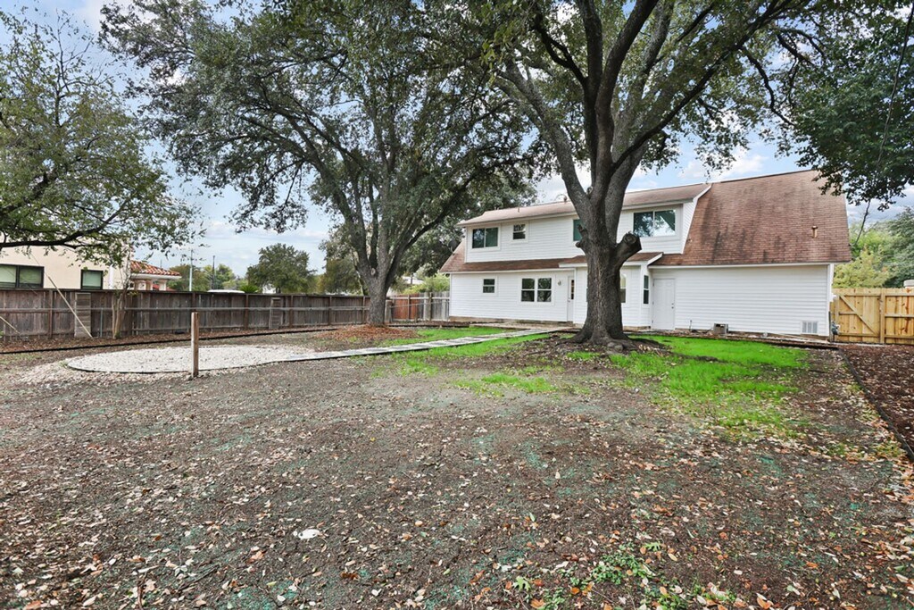 Located in the well-established North Star Hills subdivision, this spacious two-story home offers an open floor plan and luxury wood laminate flooring throughout. A formal dining room sits just off the entry with easy access to both the family room and kitchen. The family room features built-in shelving, high ceilings, a ceiling fan, and plenty of natural light. The kitchen includes stainless steel appliances—refrigerator included—and ample cabinet space for storage. The primary suite is conveniently located on the first floor and offers high ceilings, a ceiling fan, a single vanity, and a tub/shower combo. All secondary bedrooms are upstairs, providing privacy and separation. The oversized backyard is shaded by mature trees and includes a privacy fence and stone walkway that creates a great spot for a BBQ pit or chiminea. Conveniently located near major highways, the San Antonio Airport, Incarnate Word, The Pearl, and a variety of shopping and dining options.