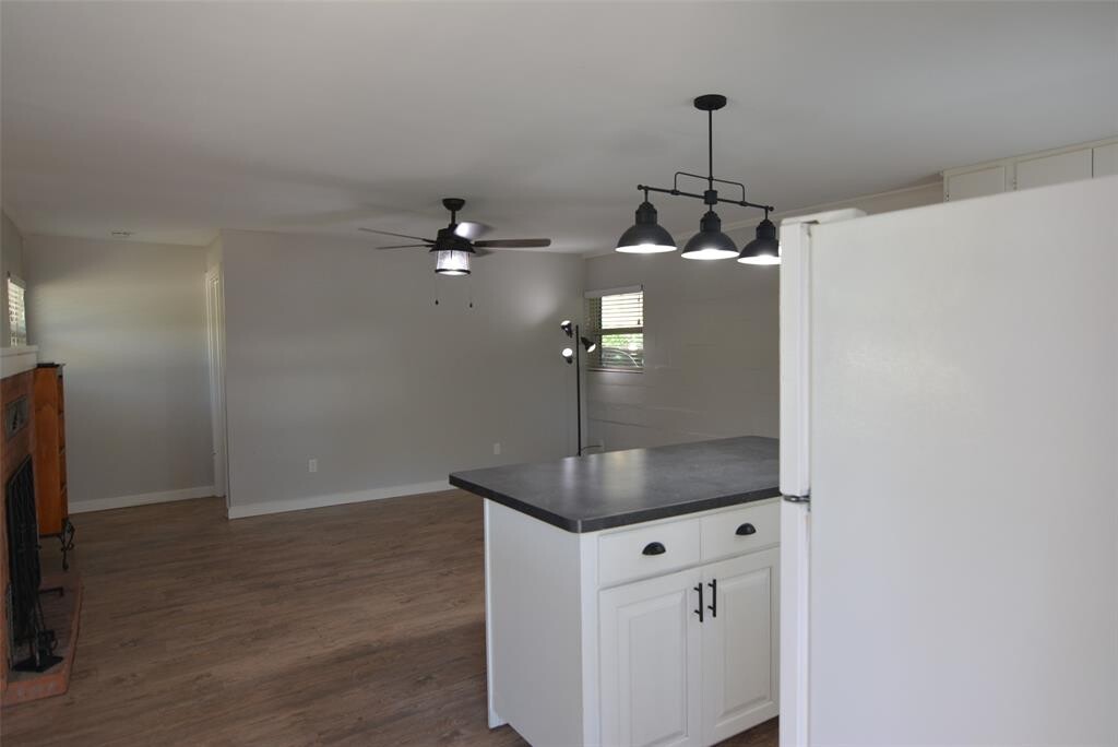 Lake living at it's best! Great opportunity to live by Lake Travis (walking distance to the lake and private HOA lake front park) with Lake Travis access, boat ramp, fishing docks, courtesy dock, covered pavilion with kitchen, playscape, firepit, and pickle ball court nearby. Home was recently renovated with new kitchen cabinets, appliances, flooring, paint, and bathroom. Living room has actual working wood burning fireplace. Includes one car port as well as storage building. Back yard is fenced so bring your dog. About 10 minutes to Cedar Park/183 Toll and retail shopping and businesses, so you get hill country lake living with the conveniences nearby. Great single family home at apartment rental price, but with Lake Travis access and park.