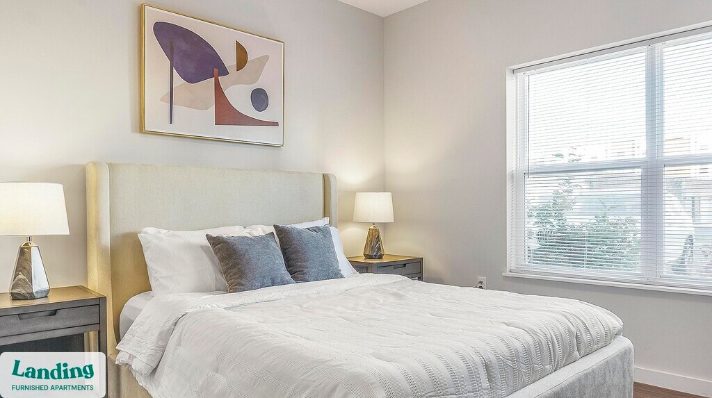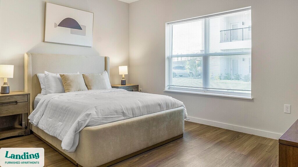 Landing is a top-rated, fully furnished apartment network with thousands of homes across 250+ U.S. cities. With premium amenities, a mobile app to manage your stay, and 24/7 support. Our apartments have everything you need for monthly and longer stays. 6-Month+ Stay base rent: starts at $2571/mo 12-Month+ Stay base rent: starts at $2264/mo Landing's apartments at The Landing are designed for comfortable, easy living, with the ability to stay as long as you like. All Landing apartments include: - Fast Wi-Fi - Stylish furnishings - Fully-stocked bathroom - Smart TVs - Comfortable bed - Professionally cleaned - Guest support Stay longer for cheaper! The longer you stay, the bigger your discount. Price advertised is for a 12-month stay, including all utilities and fees, and may vary based on availability. We manage multiple units at this property. While all feature a similar style and furnishings, the layout and specific design elements may vary slightly from the photos provided. Some of the nitty-gritty: a background check and proof of income are required; we're completely smoke-free; pet-friendly options are available; parking is subject to availability.