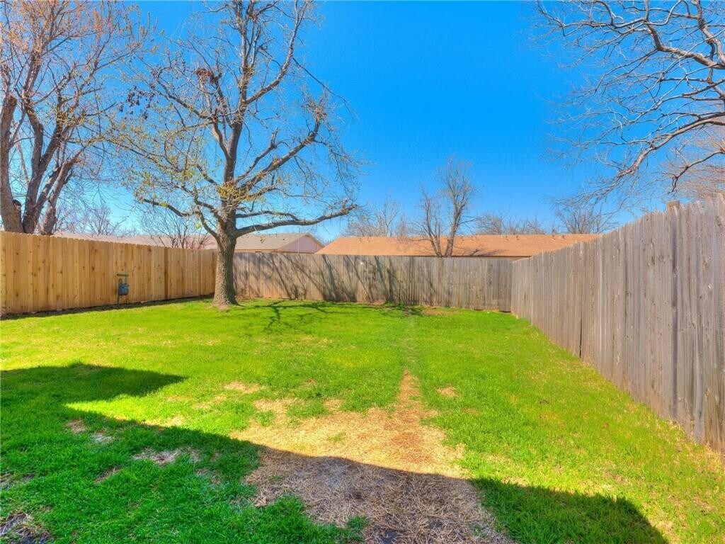 Fantastic 3 bedroom,2 bath duplex with over 1500 sq ft and off-street parking! Head on inside to find stairs to the second level and a short hall to the full equipped kitchen. The Dining area has a bar that overlooks the spacious living room. Enjoy cozy nights by the fireplace in the large living room with a slider to the back patio and yard. Upstairs you will find a primary bedroom with a private bath and 2 additional roomy bedrooms with a full hall bath. 2 car garage with private fenced backyard. Conveniently located off of N Council Rd and W Hefner near shopping,parks,restaurants,and more. 18 month minimum lease