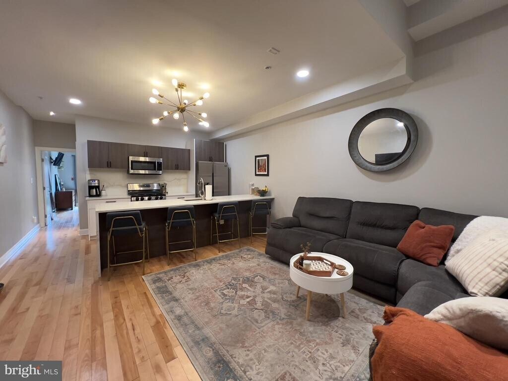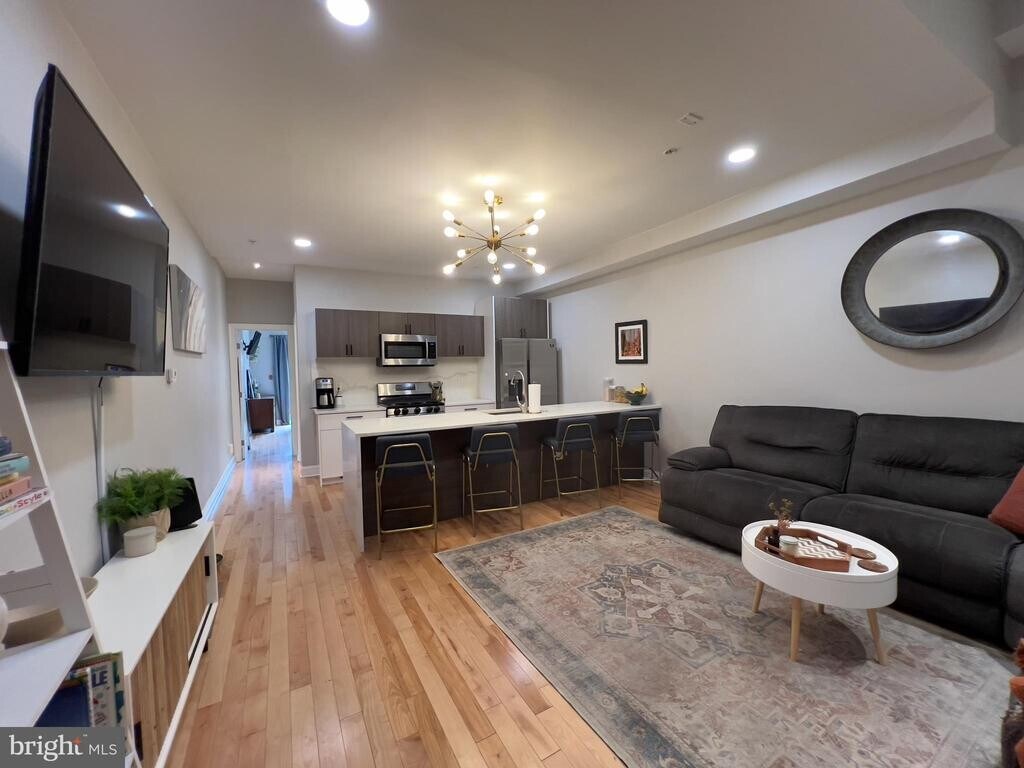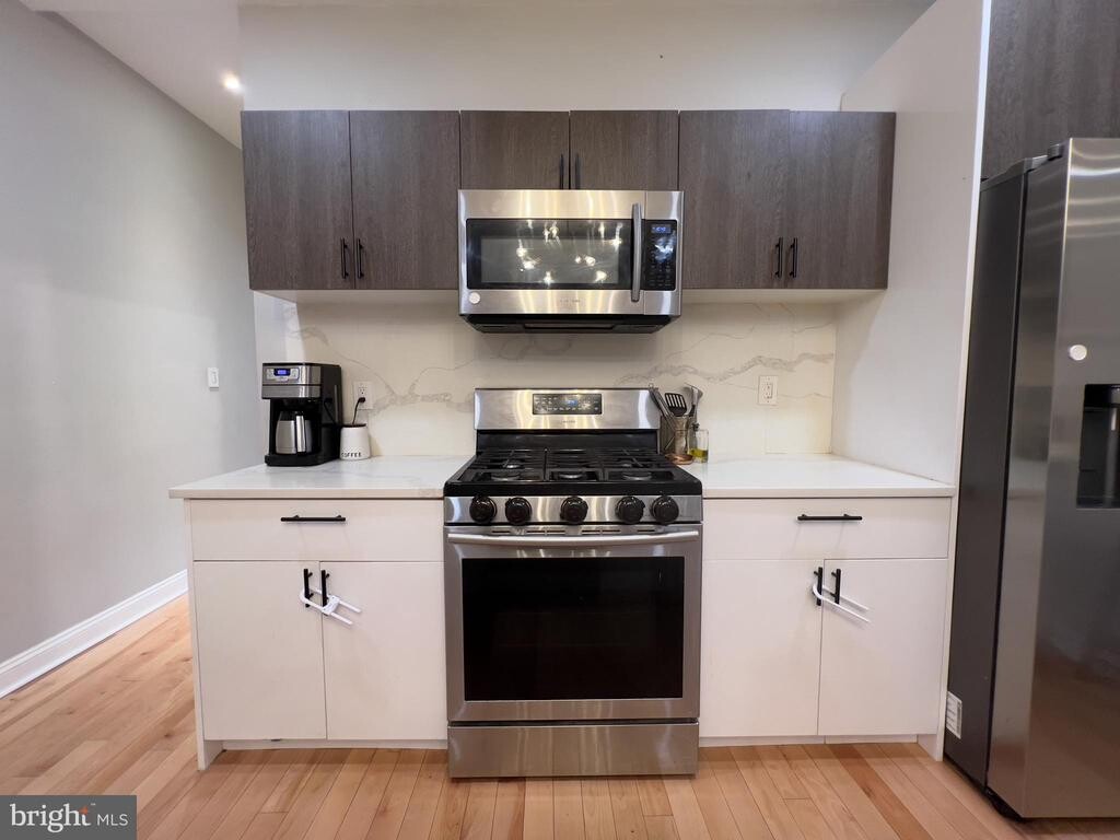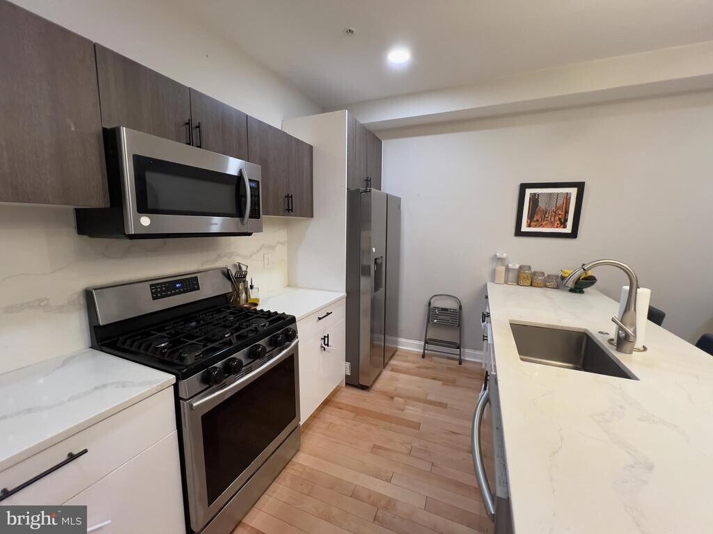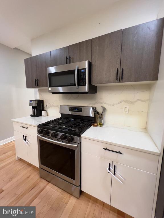Bi Level three Bedroom, two Bathroom apartment constructed in 2020. Large space at 1788 square feet in the First floor and Lower level plus a private patio. Open Kitchen Living Room layout. Kitchen with stainless steel appliances, including a dishwasher, quartz countertop, breakfast bar. Two Bedrooms and two baths on the first floor. The large rear Bedroom on the main level has sliding glass doors to the Patio. There is an extra storage area accessed from the patio. One Bath with large tiled shower. The second Bath with a tub. Third Bedroom, plus Den, storage. Washer and Dryer on lower level. Central air conditioning. Great access to multiple SEPTA public transit bus lines at Girard and 7th, as well as the trolly and a fifteen-minute walk to either the Broad Street Line or the Market Frankford Line. A short walk to 2nd Street restaurants, bars, coffee shops, and ACME and Heirloom Giant grocery stores. Tenant is responsible for utilities.