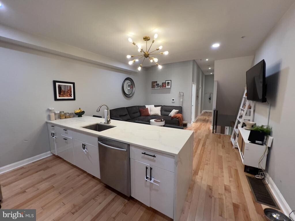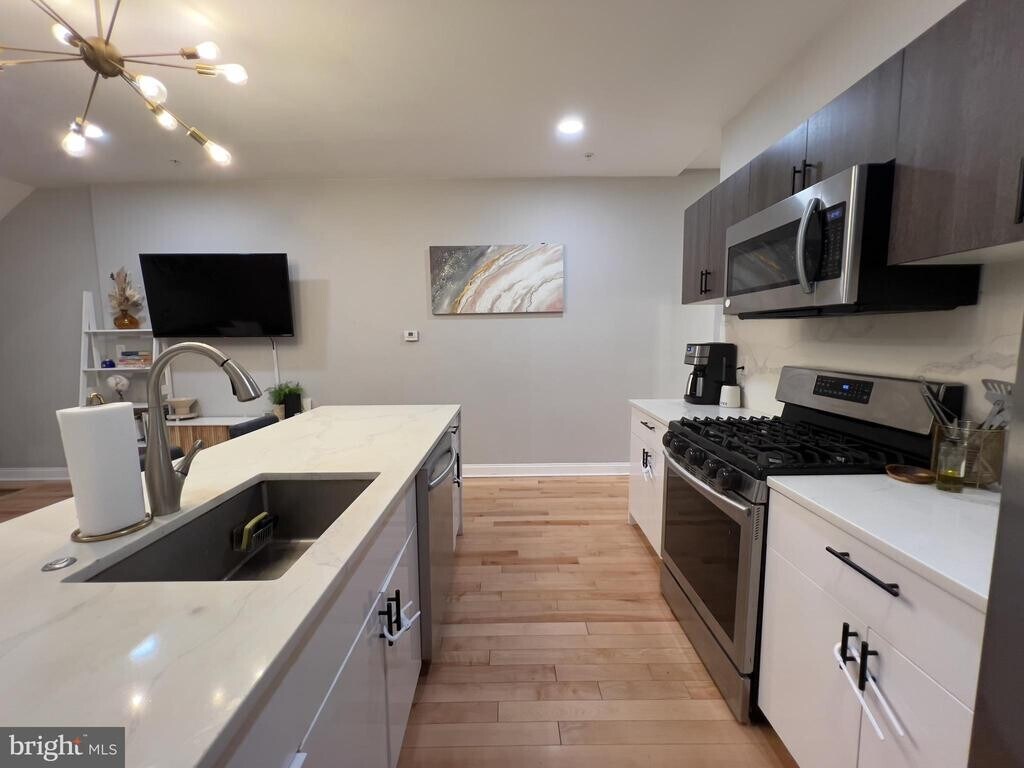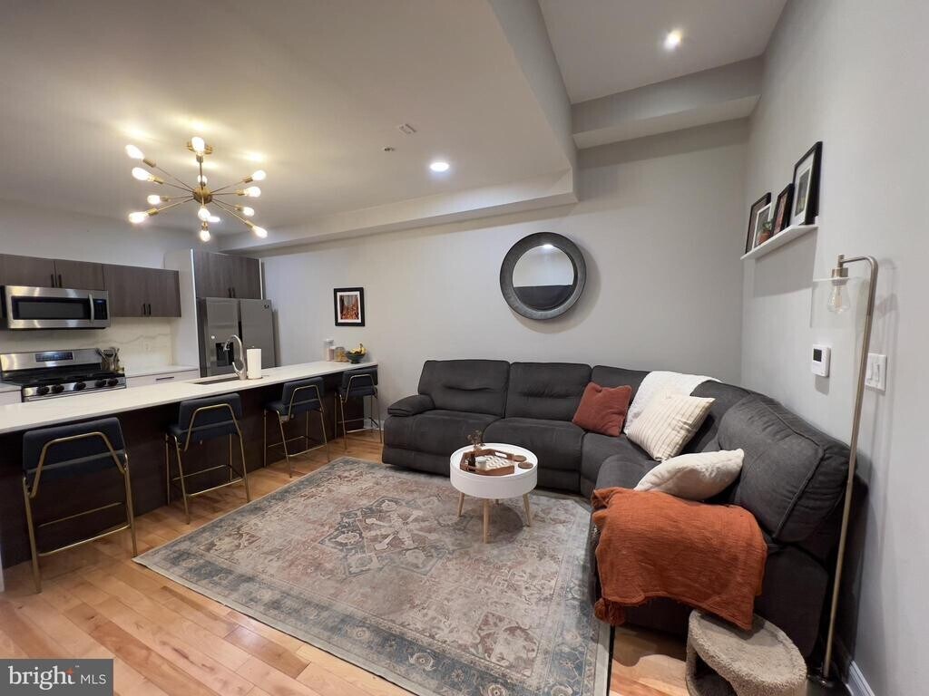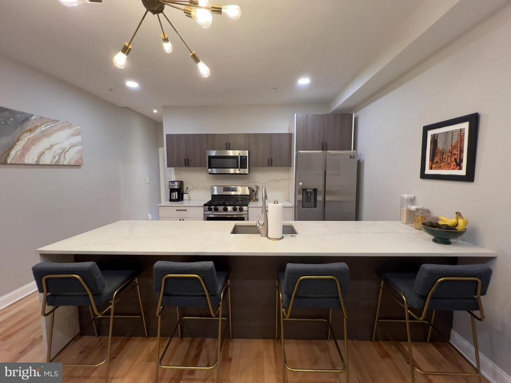 Bi Level three Bedroom, two Bathroom apartment constructed in 2020. Large space at 1788 square feet in the First floor and Lower level plus a private patio. Open Kitchen Living Room layout. Kitchen with stainless steel appliances, including a dishwasher, quartz countertop, breakfast bar. Two Bedrooms and two baths on the first floor. The large rear Bedroom on the main level has sliding glass doors to the Patio. There is an extra storage area accessed from the patio. One Bath with large tiled shower. The second Bath with a tub. Third Bedroom, plus Den, storage. Washer and Dryer on lower level. Central air conditioning. Great access to multiple SEPTA public transit bus lines at Girard and 7th, as well as the trolly and a fifteen-minute walk to either the Broad Street Line or the Market Frankford Line. A short walk to 2nd Street restaurants, bars, coffee shops, and ACME and Heirloom Giant grocery stores. Tenant is responsible for utilities.