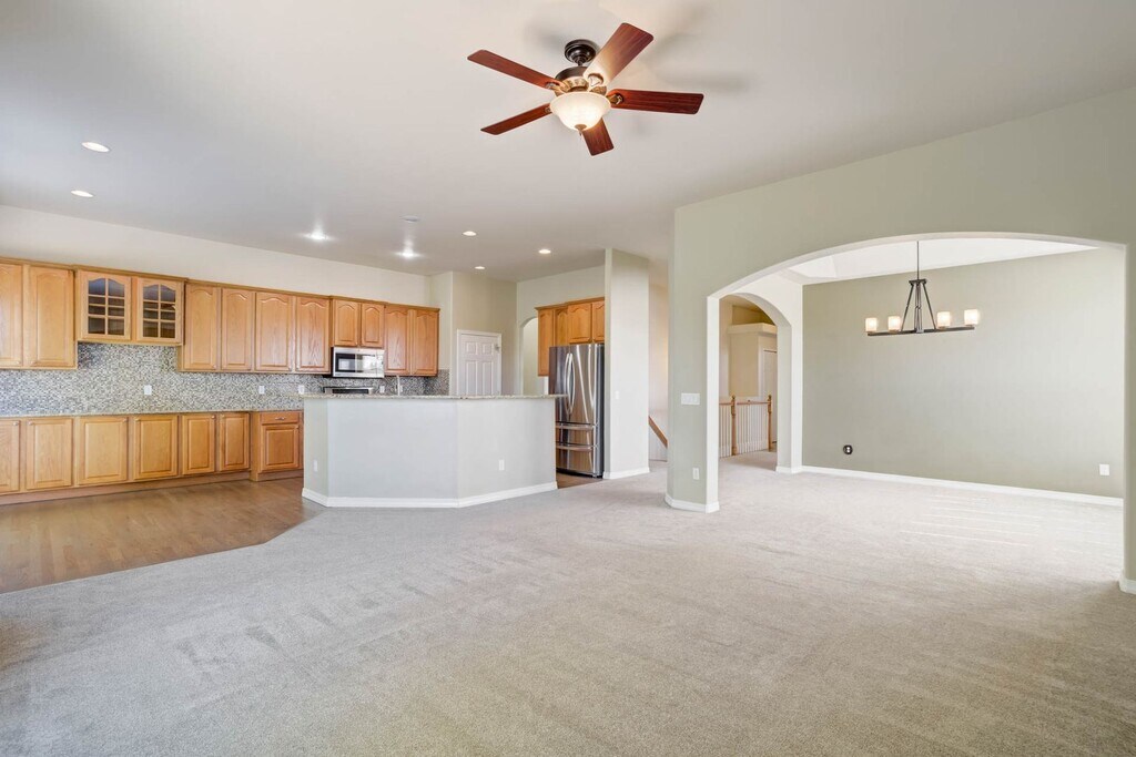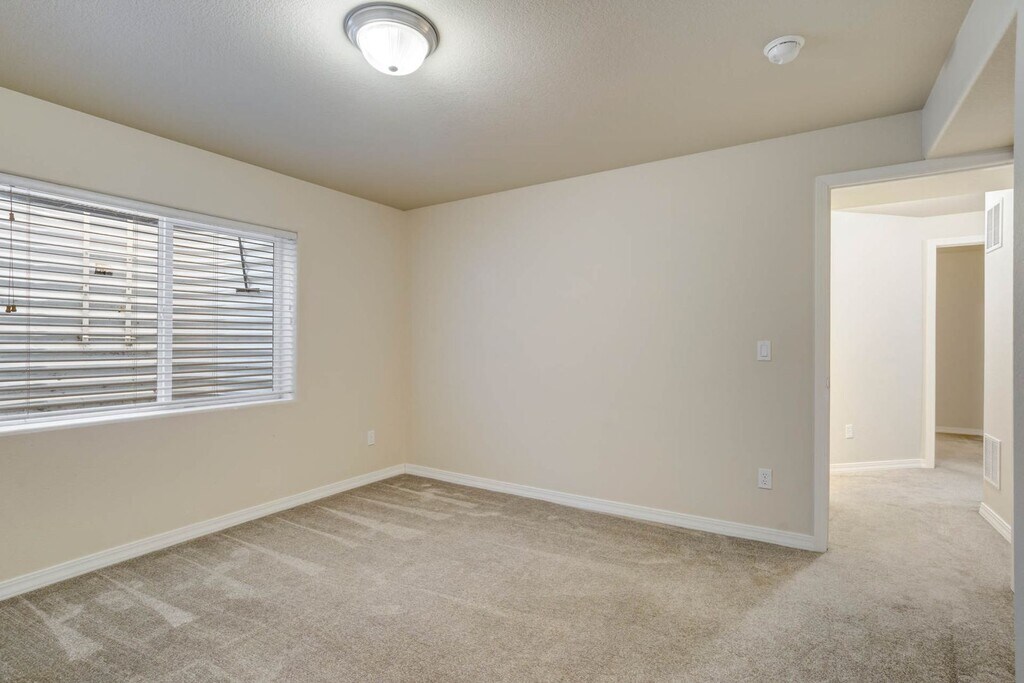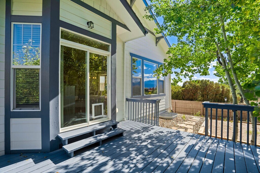 Great ranch style home in Pine Creek offers main level primary bedroom with 5pc bath and large walk in closet. The main level also features wood floors and carpet, a second bedroom or office with French doors, casual dining and formal dining, large entertainment area with gas fireplace and built in entertainment nook, and a second full bathroom. The patio door offers easy access off the kitchen and casual dining area to the large back deck with great views of Pikes Peak looking across open space. You will love the virtually maintenance free landscaping and the stunning views from the family room and the back deck. The lower level offers 3 more bedrooms plus a full bathroom, a large entertainment area or family room and a dedicated space originally set up as a dance floor training area but also works great as a workout area. The 2 car garage offers overhead storage for bicycles or miscellaneous. Very low maintenance yard is fully landscaped and fenced. Newer carpet and paint, central air, alarm system, whole home humidifier, close to parks and walking trails, close to schools. Located in the district 20 school district and zoned for Mtn View, Challenger and Pine Creek High School. Shorter lease term available (6 months minimum). For more information or to schedule a showing visit For Virtual Tour: