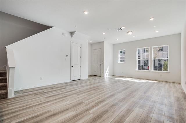 Marvelous townhome for lease near Las Colinas 13 miles to Dallas, near DFW Airport, HWY 635, PGBT 161, HWY 114, and 17 miles to Legacy West. This home features Energy Star Whirlpool stainless steel appliances, Maestro Quartz solid surface countertops, an undermount single bowl sink, gas cooktop, oven and microwave, 42-inch cabinets, ceramic tile backsplash, Moen faucet, and pendant lighting above the eat-in bar top island. Second-floor bedrooms and large loft area. Primary suite with Maestro Marble countertop double-sink vanity, ceramic tile shower with seat bench and glass surround, and walk-in closet. Smart home features Ring doorbell and upgrades.